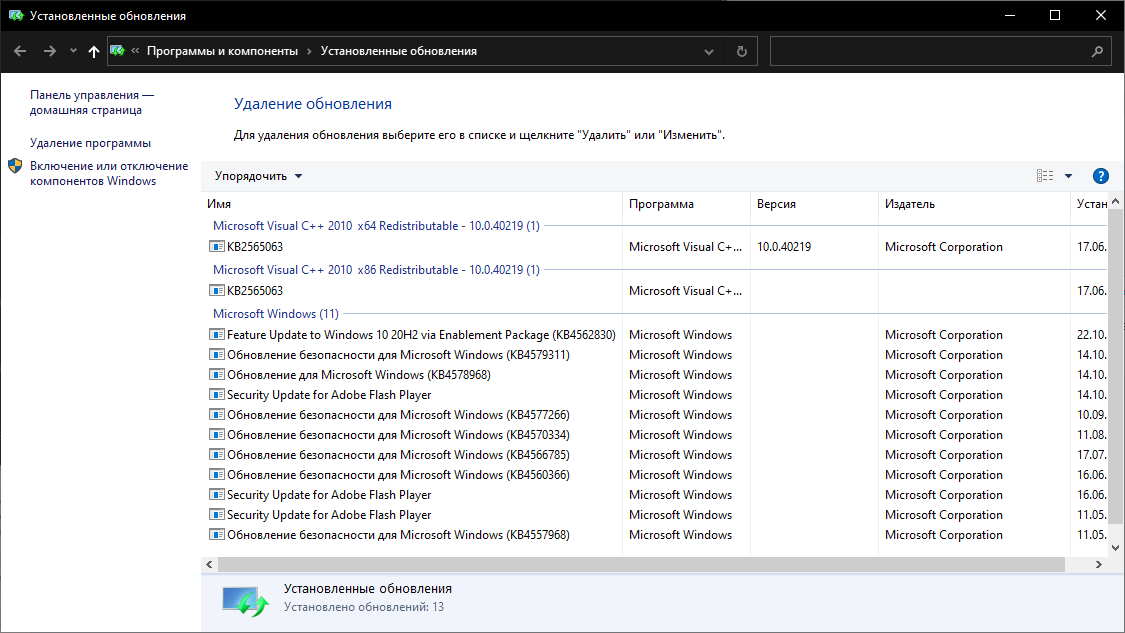 какая версия винды и билд? +ты не там смотришь... разве не видишь? ты смотришь в >>>> панель управления-программы и компоненты-просмотри установленных обновлений. нужно смотреть в >> параметры-обновления и безопасность-просмотр журнала обновлений