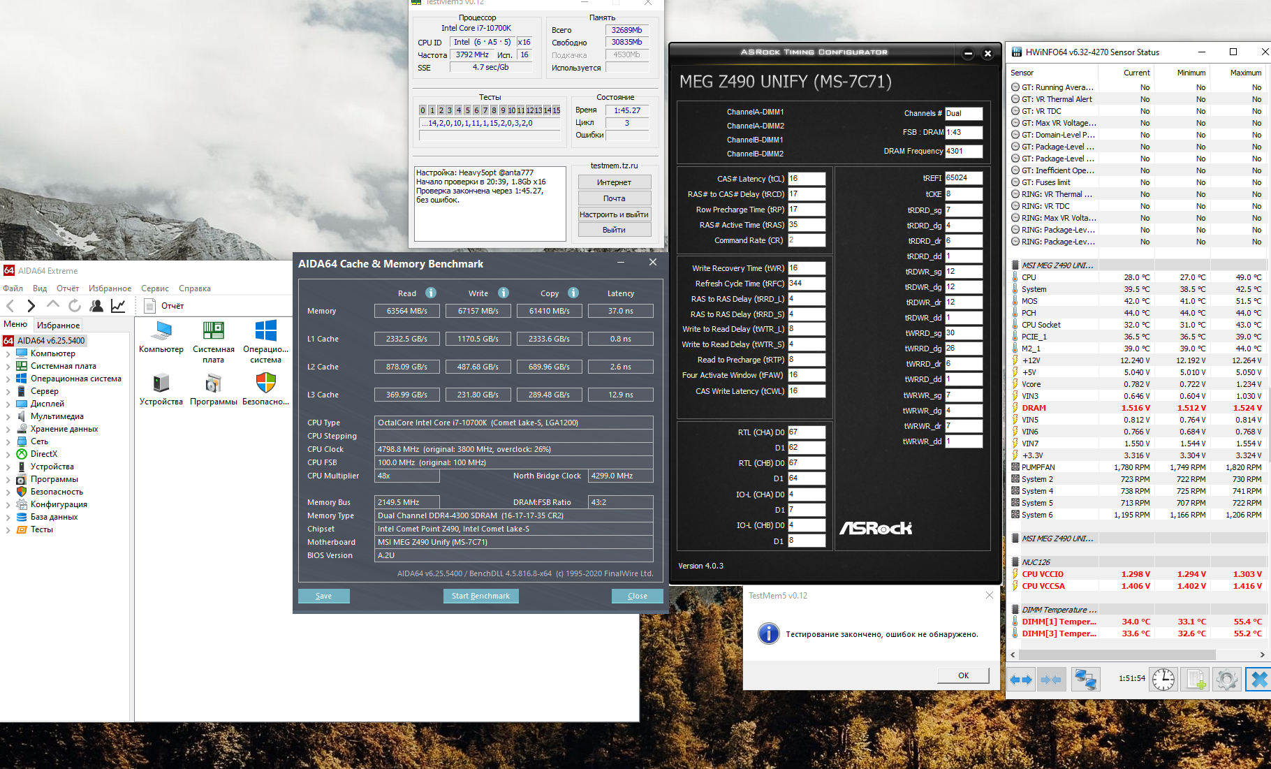 Решил перейти на киты 16 GB 2 шт. G.SKILL Ripjaws V F4-3200C14D-32GVK (проц i7 10700k, msi z 490 unify) Удалось выжать 4300 при 16-17-17-35 (напряжение 1.51, sa 1.4, oi 1.3). Выше вольтажи пока ставить не хочу, т.к. жду вентиляторы для оперативки с алика. Как думаешь для этой частоты есть еще что подправить?