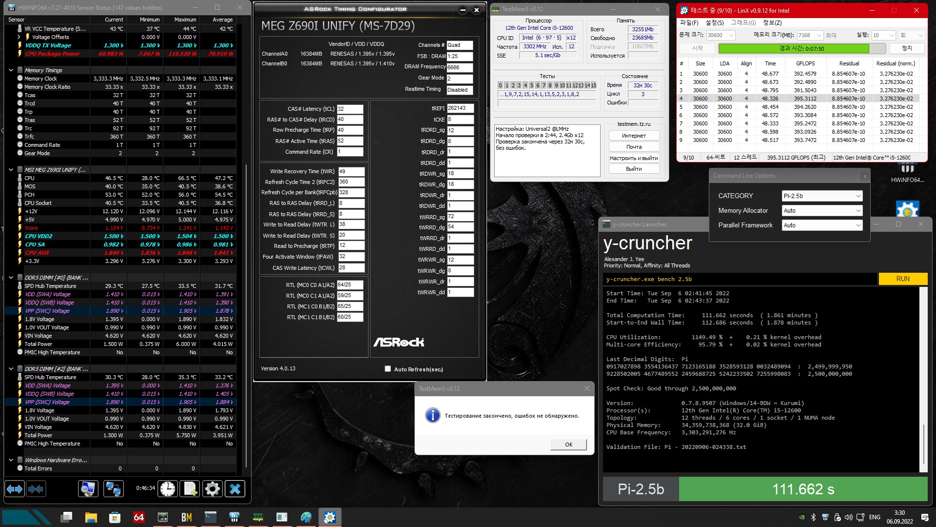 Продолжаем с 6800-30-40-40-54. Заметил особенность: на 1.5V DDR VVD/Q и CPU VDD2 1.4V сыпет ошибками. Опустив, вольтаж до 1.48V и 1.35 соответственно, память стабилизировалась. Сразу резюмирую по 7000-32(34). Бутит от 1.55В, в реальности для стаба нужно больше. РТЛ блок нормально не тренирует. Планки греются 60+ без обдува. Тут вывод один: 6800 это предел для этих чипов, как по даташиту Unify-X, либо сажать на воду и смотреть (делать я этого, конечно, не буду).