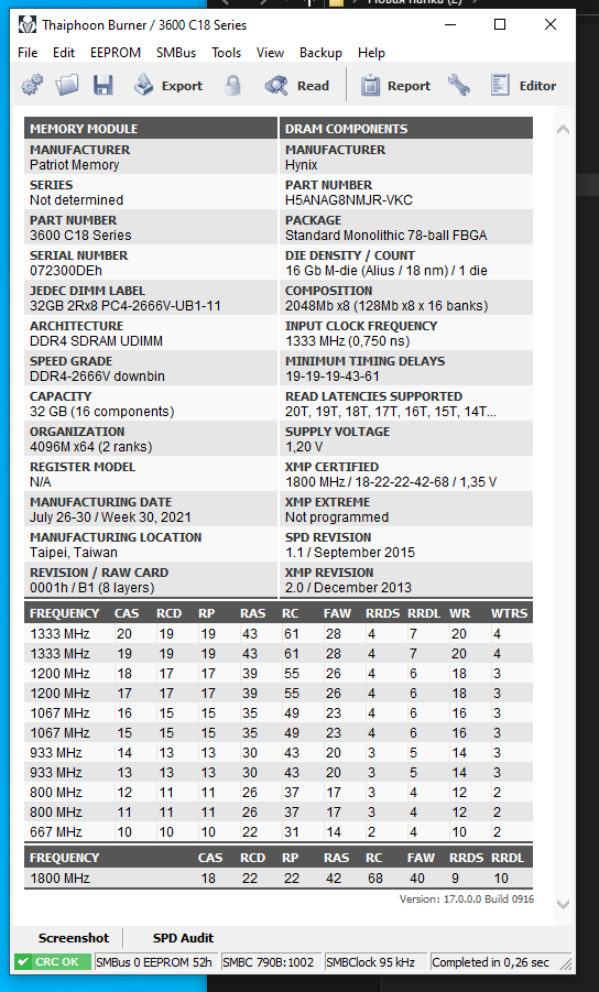 temrus63 Странно, вроде XMP, а некоторые тайминги не совпадают, хоть и в большую сторону. А в Аиде тайминги на XMP покажите, она бывает ещё больше встроенных таймингов показывает. На вкладке SPD.