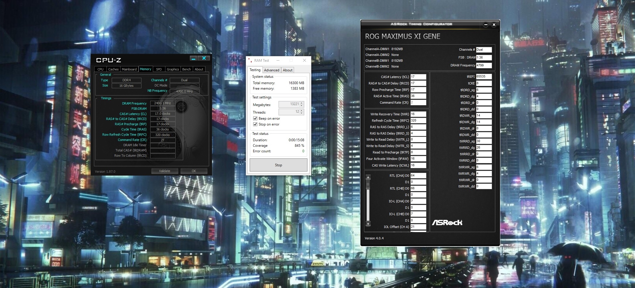 Приветствую комрад! На днях еду за такой же памятью, можешь мне в личку продублировать скриншоты для 4000-16-16-16-36, материнка Z390 Ace, биос в1.90.