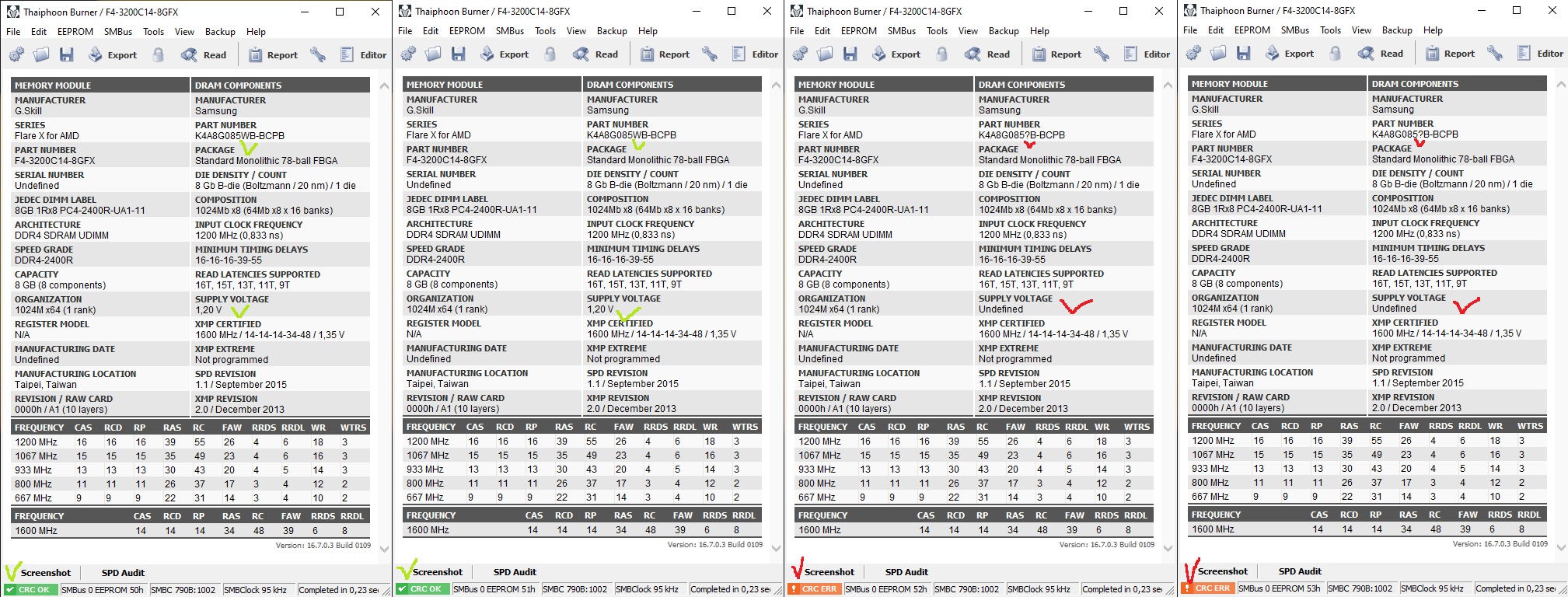 Подскажите, нужен совет, просмотрел память через Thaiphoon, на двух планках ошибка crc error, нет информации по памяти: Supply Voltage Undefined и Part Number K4A8G085?B-BCPB . Это катастрофа? Брак или после ремонта?) Память на гарантии, стоит ли сдавать?