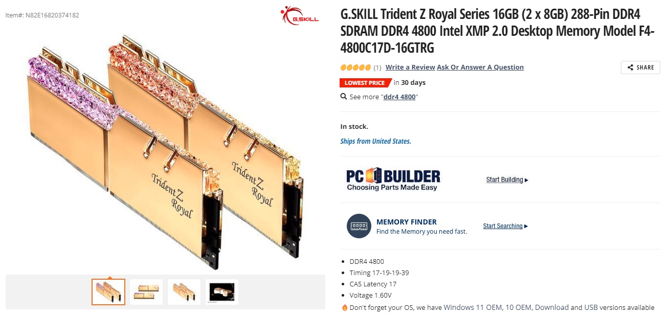 Покупать модули G.SKILL с профилем XMP 4000, 4600, 4800 стоит только если вы понимаете зачем они вам нужны и у вас есть плата способная заводить память 4400+ Мгц (покупать и эксплуатировать такую память в XMP бессмысленно). Модули серии Trident Z Royal не несут в себе никаких отличий кроме красивых радиаторов и цены, а порой и наличия самых дешевых чипов произодства hynix (например F4-3200C16D-32GTRS).