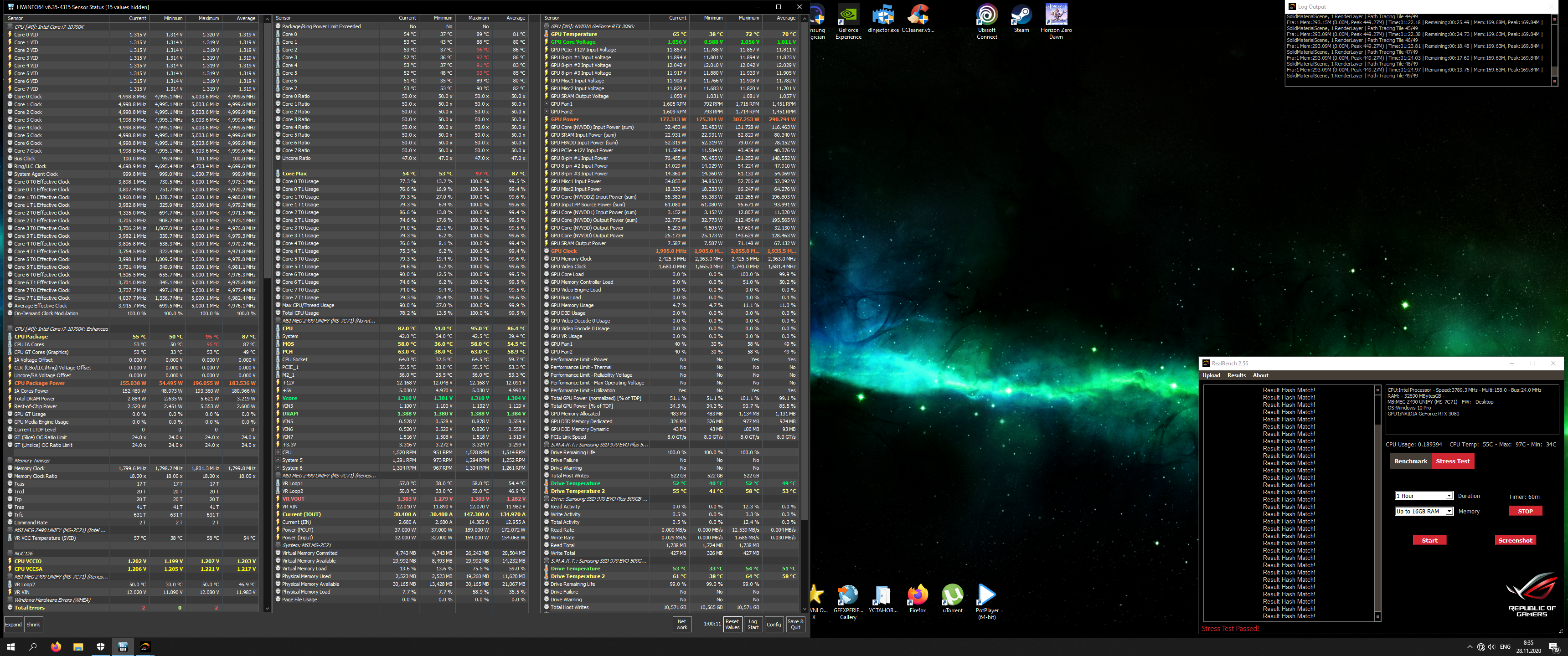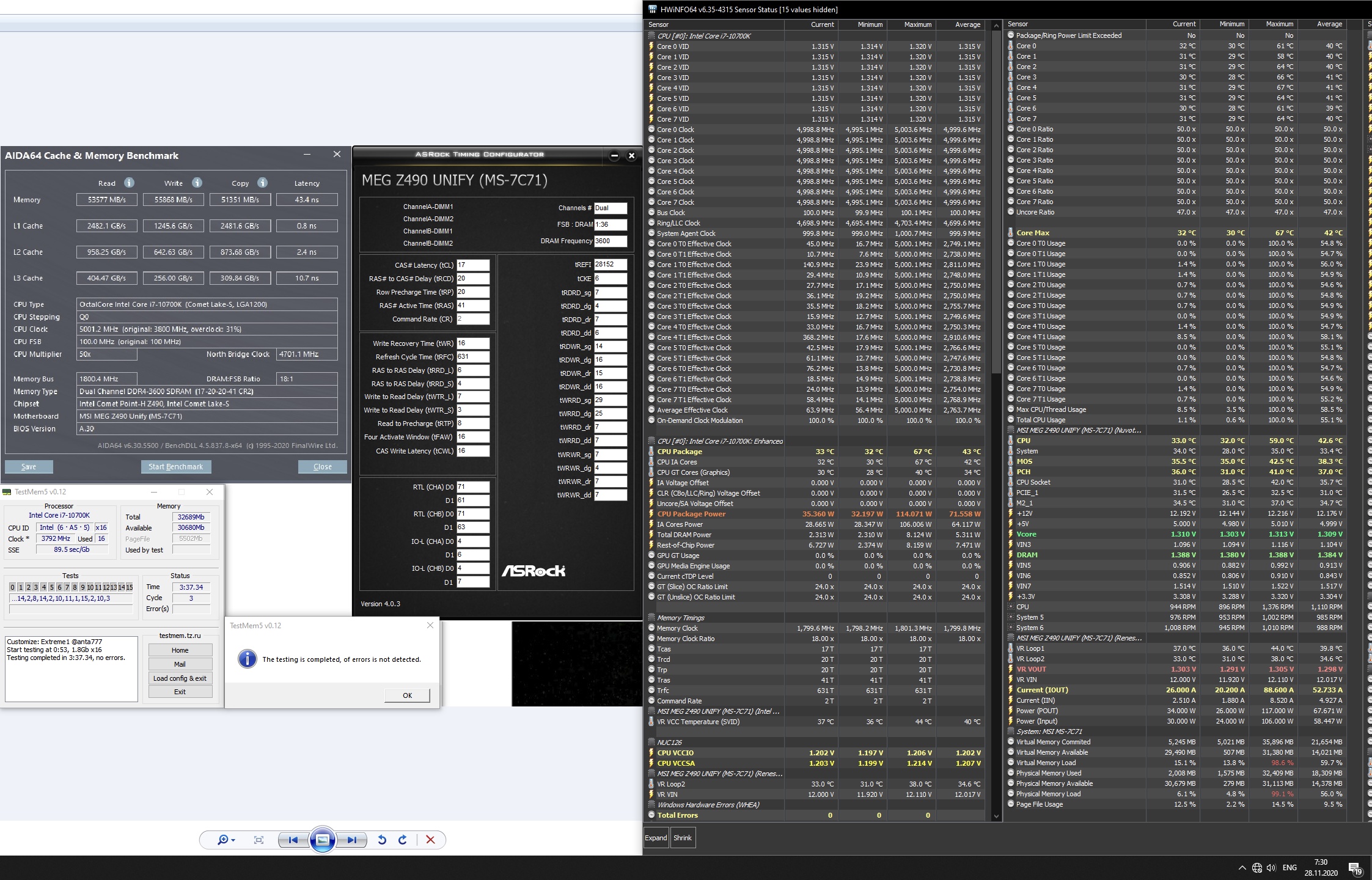 Да я не то, чтобы гонюсь. Пока пределы прощупываю, но уже поднадоело если честно. За 3 недели, как собрал, даже часу не поигрался. Если будут проблемы в реальных задачах, скину частоту. А вот к памяти у меня куда больше вопросов по профиту. Не совсем понимаю, что мне даст разгон со 100% стабильных 3000 до 3600 в играх на 3440x1440 144. И что профитнее сбросить в случае проблем, проц или память.