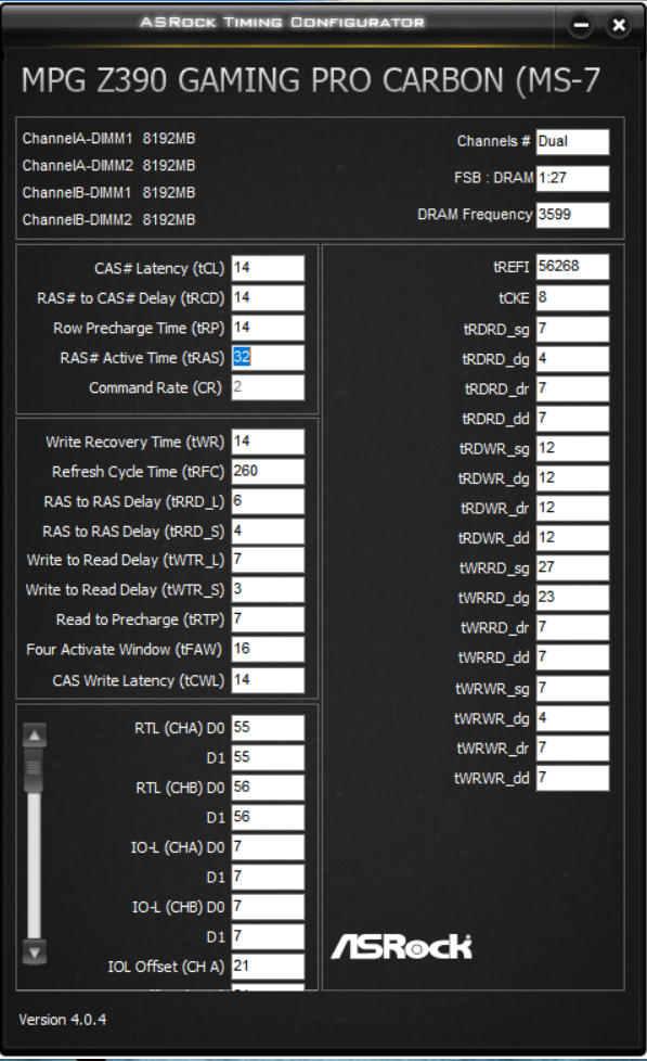 До профильной мп у меня был z390 карбон, предыдущая память из коробки была g.skill 4266cl19 2х8гб, на карбоне пошла только 4000 17-17-17-36 без ошибок, выше частоту не брала, хоть какие напряжения ставь, с 4мя модулями не пробовал.