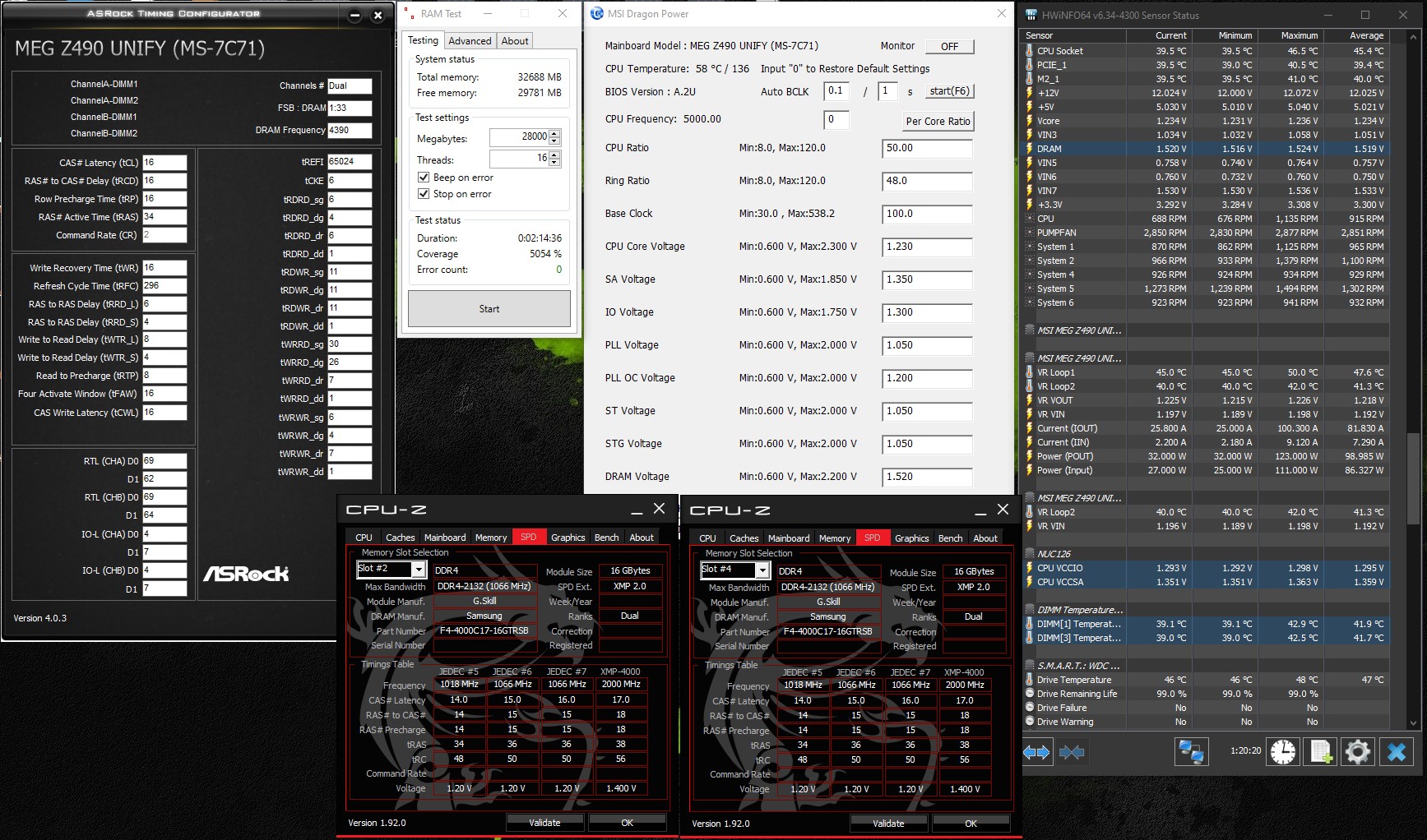 Ребята, может кто подскажет. Крч, меня интересует ответ на вопрос про Tfaw 16 и Rrds 4. В одном из скринов я еду на 4360 Tfaw 16 Trrds 4 на вольтаже sa 1.36 io 1.3 ram 1.5 На след скрине все те-же вольтажи и также стоят тайминги в авто, кроме первичек и Tfaw 16 Rrds 4. Но там уже ошибка. Причём она в рандомное время вылазит. Допустим, первый раз тест я прошёл, след раз перезагружаюсь, запускаю и на 14 минуте ошибка, потом ещё раз загружаюсь, запускаю и уже на 3 примерно. Потом опять могу пройти... Как это работает и от чего зависит? Да, я уже нашёл рабочий профиль с Tfaw 16 Trrds 4, скрин тоже приложил, но меня просто интересует вопрос: почему я еду и не еду одновременно на частоте выше. Может ещё что-то в биосе поставить надо? Я бы мог и 4500 осилить, ибо там просто с первичками еду без проблем.