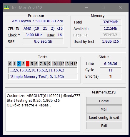 Приветствую всех разгонителей. В тесте тм5 Анта абсолют появляется 1 ошибка на 4 этапе. Причем это всегда одна ошибка, настроил тест на бесконечные циклы и за 15 прогонов та же одна ошибка в 4 тесте, как и при стоковых 3 прогонах. В шапке темы расшифровка ошибки не приведена. В какую сторону копать?