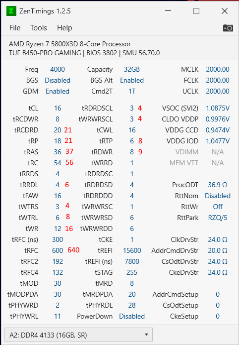 Попробовал - 3800 GDM-OFF+CR1 едут без проблем при 1.4v. Изначально, когда пробовал, был завышен RFC. Хоть и выставлял 280ns - якобы макс рекомендованный для Hynix AFR, этим зеленкам нужен 290+.