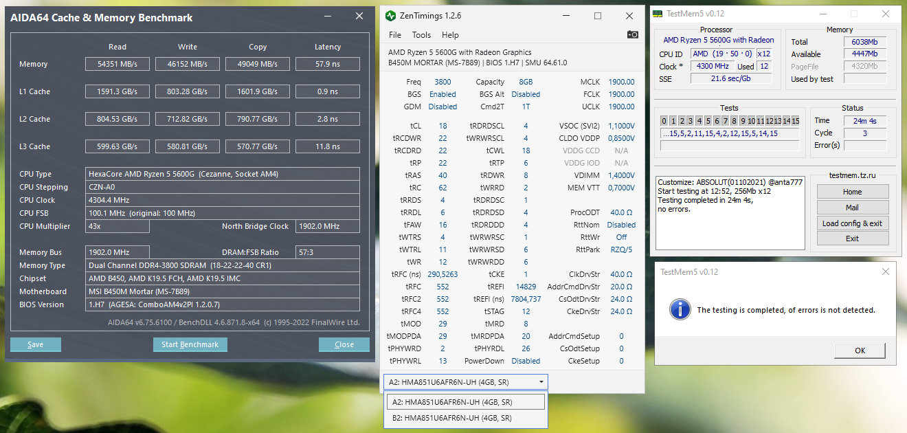 Agiliter тем не менее, ошибок не было и тесты не валились никогда с момента настройки системы. И опять же, все тесты проходит на 4066 с ещё более ужатыми таймингами, но там напряжение для микронов опасное. Тем более до этого абсолют проходил по 8 часов тестирований без ошибок.