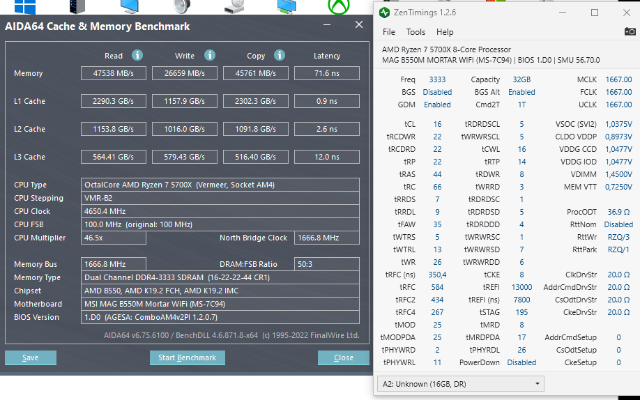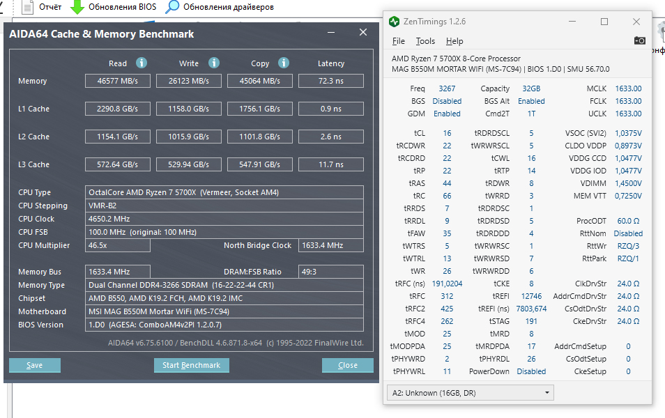 Уменьшение таймингов приводит к невозможности загрузить биос, приходится сбрасывать его перемычкой. Подбирать в будущем придется осторожно по чуть-чуть. На этой плате я еще не обновлял биос до последнего, он на сайте производителя пока в стадии бета, со свежей агесой и поддержкой zen3, может это наследие старого биоса помогло этой памяти себя так раскрыть?, а может плата просто чуть уровнем выше чем мой 550Mortar? Кто что думает?