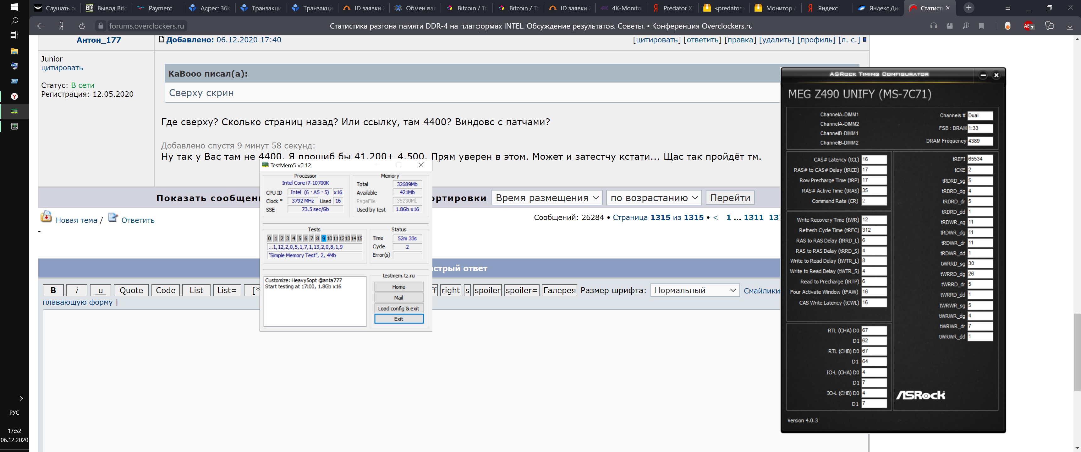 Универсальный гайд. 0. Устраните любые потенциальные проблемы с другим железом. Снимите разгон с видеокарты, снизьте частоту цп на 300 с сохранением напряжения. Не забудьте вернуть RTL в авто если сейчас не авто. 1. Крутим очень короткий мемтест, то есть если минуту живёт сразу снижать тайминг дальше. Ищите не стабильность, а явно сбойное значение тайминга, запишите его - пригодится. Гораздо проще найти явно нерабочее значение и от него плясать чем пытаться ловить нестабильность часами. Это также помогает диагностировать сбойные тайминги на ранее "стабильной памяти". Не пытайтесь найти предельные значение сразу. Сначала скрутите до +2 от минимально стабильного. Многие тайминги идут параллельно поэтому бессмысленно пытаться скрутить до упора с первого прохода. CR выставить на 2 если стоит 1. В самом конце можно попробовать скинуть до 1. 3 Ставить только на очень большую частоту или если по другому ну совсем никак.