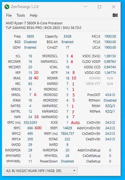 1. tRP, tRAS, и третичные от tRDRDSC до tWRWRDD. tCKE не используется при PowerDown Mode Disable. 2. tRRDL 3. tWR, tRTP 4. tRDWR, tWRRD 5. tRDRDSCL, tWRWRSCL (если поедет ниже 5) 6. tRFC