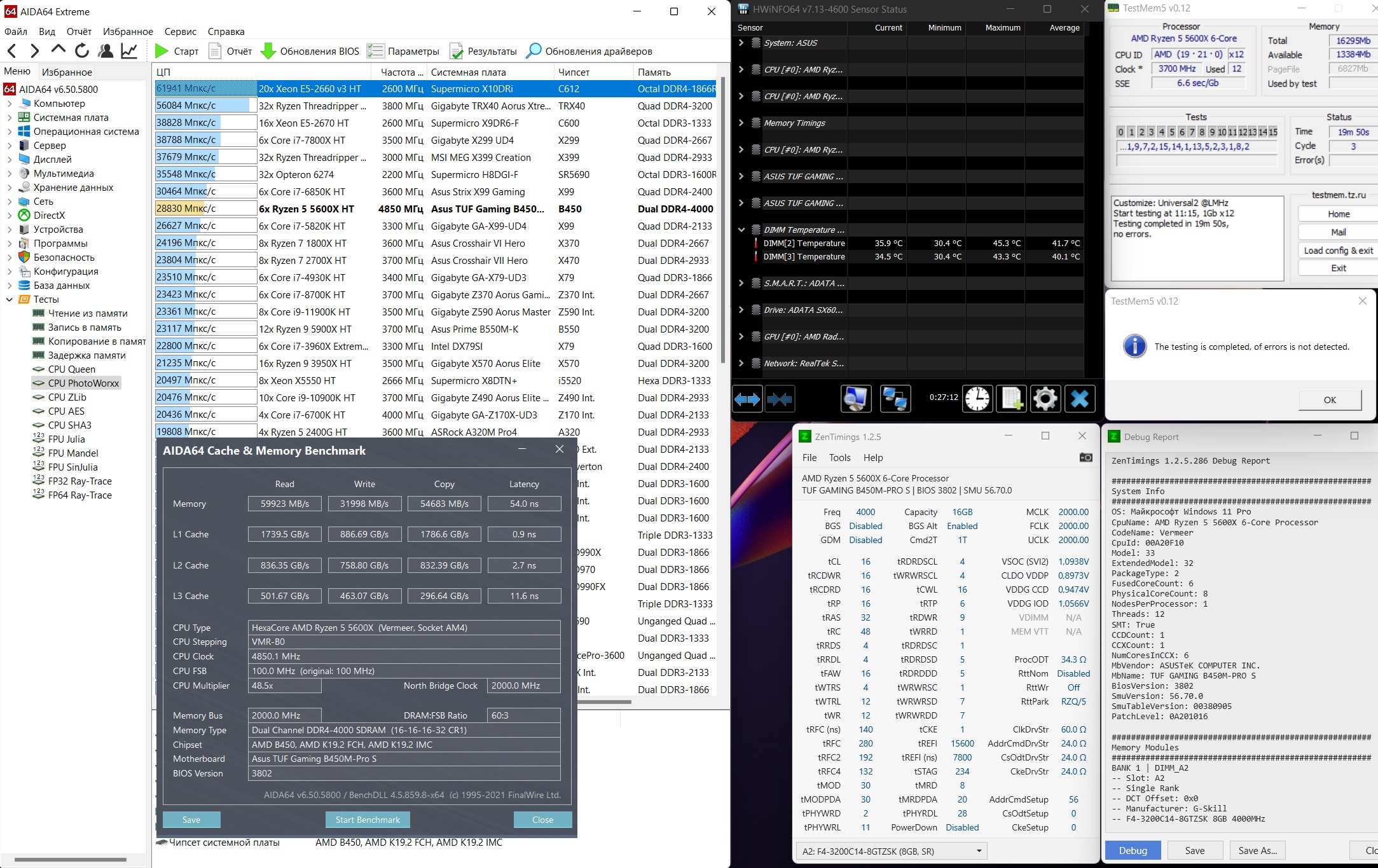 4. Перед настройкой частоты и таймингов рекомендуется установить принудительное охлаждения на модули памяти, особенно для памяти с чипами Samsung B-die, повышение температуры памяти выше 48°, может сопровождаться дополнительными ошибками, не связанными с неправильной настройкой таймингов, что затруднит их поиск и общую настройку памяти.