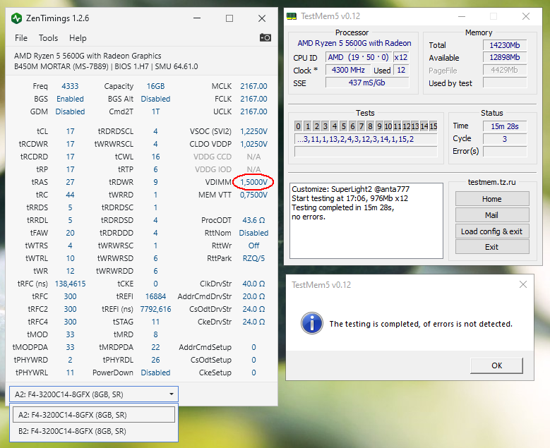 CL16 со всеми этими же настройками (кроме RFC тк напряжение на 0,05 выше и его можно опустить) тоже едет, но пока только легкие тесты: