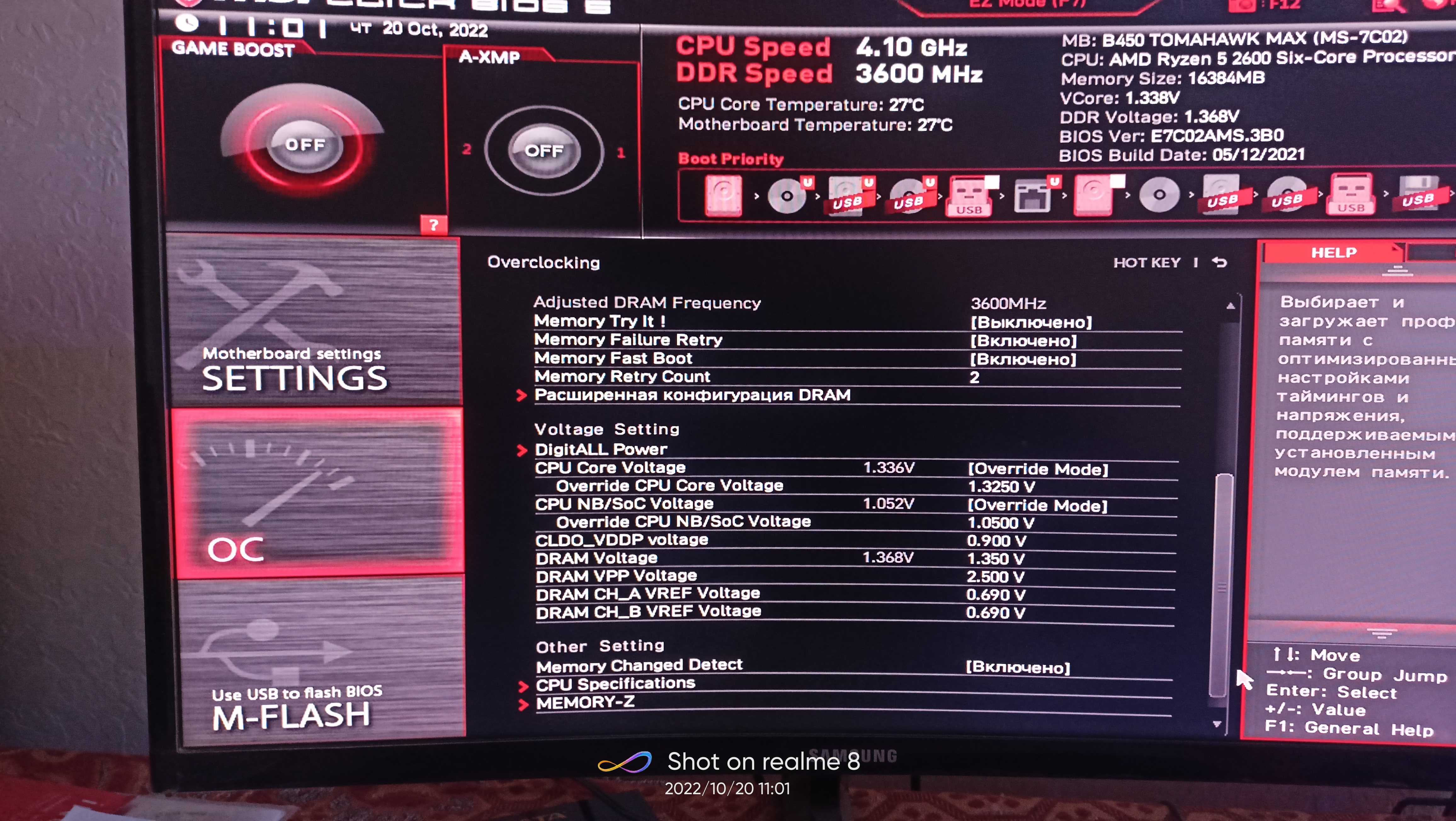 4. Перед настройкой частоты и таймингов рекомендуется установить принудительное охлаждения на модули памяти, особенно для памяти с чипами Samsung B-die, повышение температуры памяти выше 48°, может сопровождаться дополнительными ошибками, не связанными с неправильной настройкой таймингов, что затруднит их поиск и общую настройку памяти.