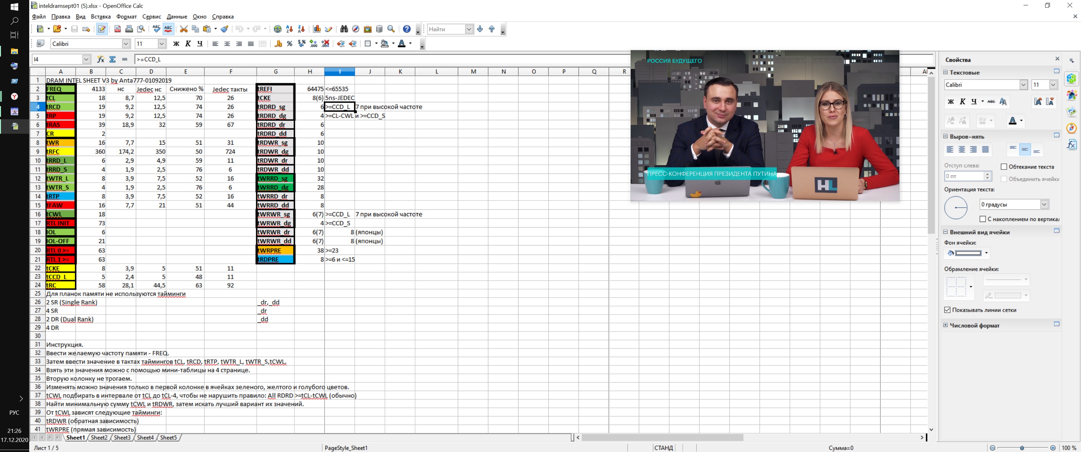 Таблица tRFC от Reous v26