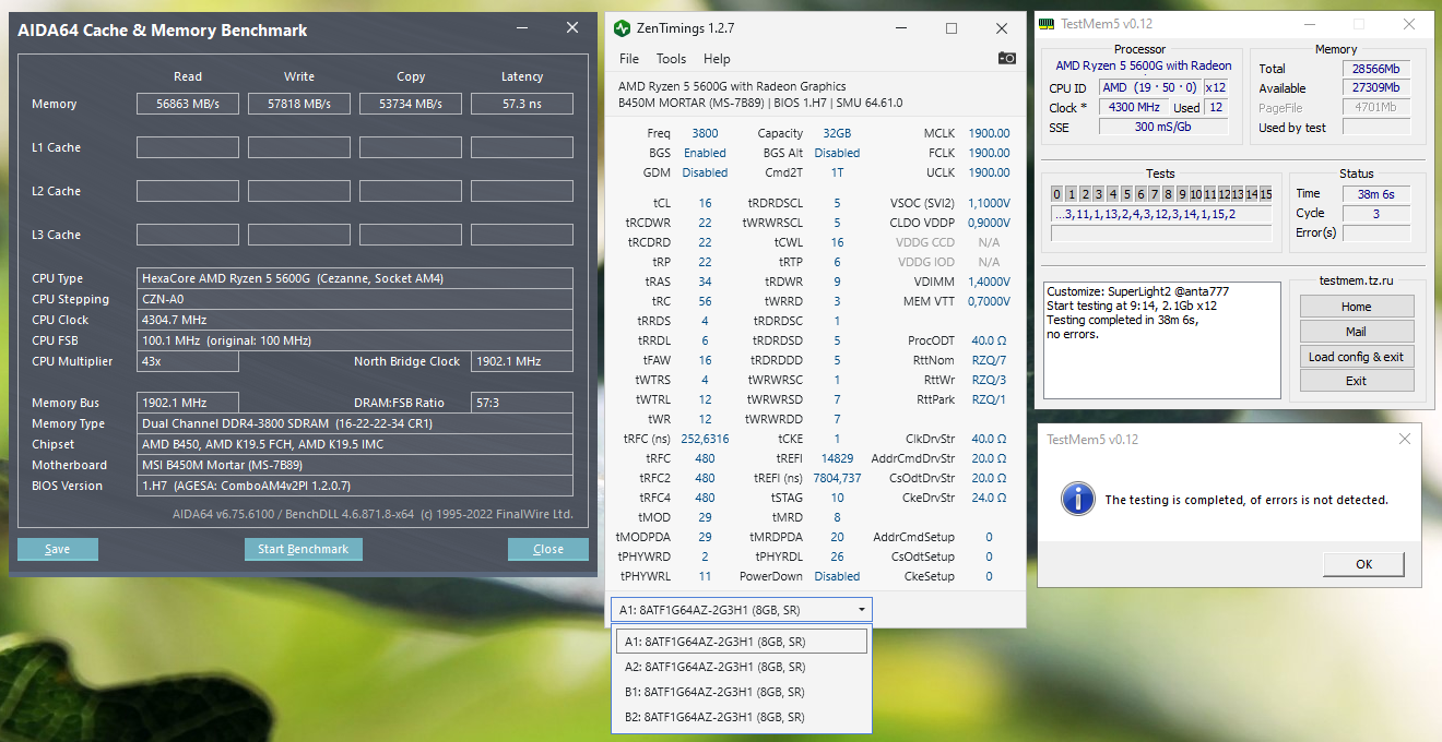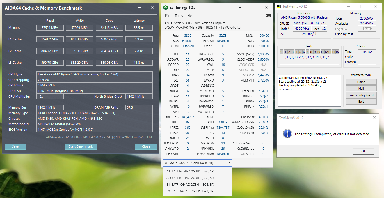 Пока лишь можно отметить, что КП у проца быстрый и, вероятно, с ходу может ехать: 3600 16-22-22-22 36 58 vDIMM 1.40v vSOC 1.125v