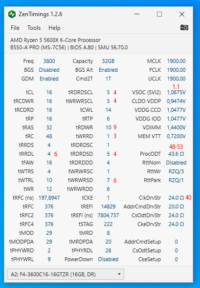 tRFC минимум 376. Если ставлю чуть ниже - 368 то система тупо не грузится. Вот не знаю может добавить напруги? У меня сейчас 1.44 V выставлено в БИОСе (материнка выставляет 1.452)