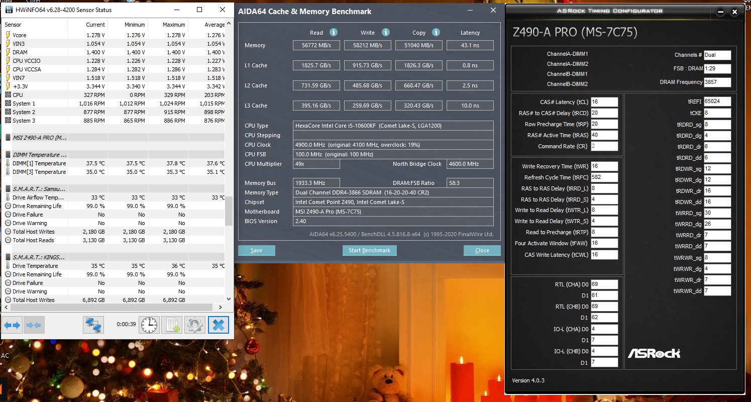 Здравствуйте! Прошу помочь в настройке материнки MSI Z390M Mortar для разгона 2х16 Balistix BL16G30C15U4R 3000cl15. На любой частоте (даже на 2666) повышение напряжения выше 1.37В приводит к появлению ошибок в TestMem5. Из-за этого пока застопорился на 3600cl16, но хочу большего.