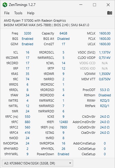 Qvak любые 16Гб чипы здесь все еще редкость, поэтому действуем по гайдам самостоятельно. Быстрейший КП вашего проца точно позволит что-то выжать. На 3600, как минимум, полагаю можно надеяться. Первички - вопрос. Если сходу, 16-22-22-22 44 66 vDIMM 1.45 vSOC 1.1v пробовал бы. А так, надо крутить да смотреть…