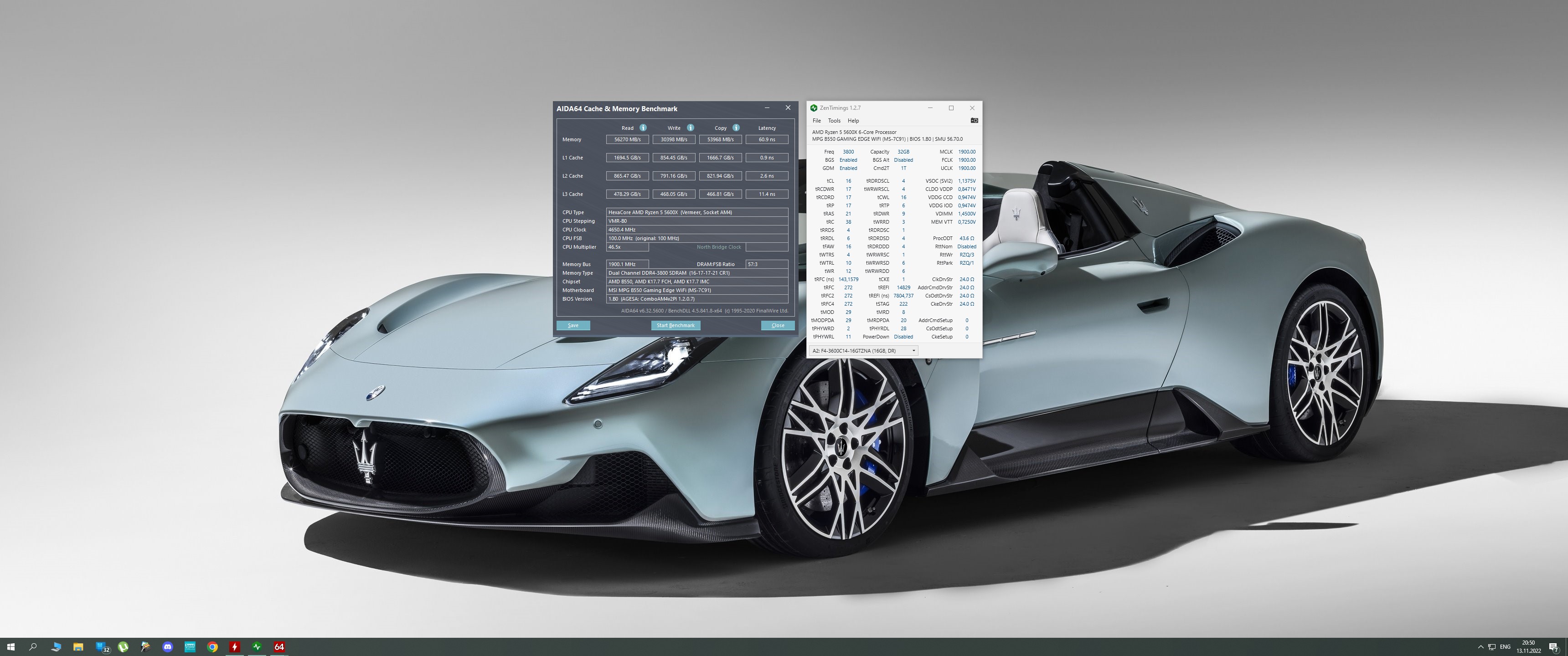 Вот, попались чипы S8B, которые вроде как также могут ехать по tRAS и tRC не по этим формулам, а значительно ниже. С первым понятно - ниже 21 просто уже доска не дает выставить. Однако и tRC, если не следовать формуле tRAS+tRP, также может ехать ниже 38, вплоть до 29, меньше, опять же, доска не дает. S8B 2x16 GDM 3800 16-17-17-17 21 38
