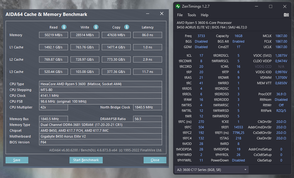 на последнем общем скрине AIDA и ZenTimings вообще разные конфиги