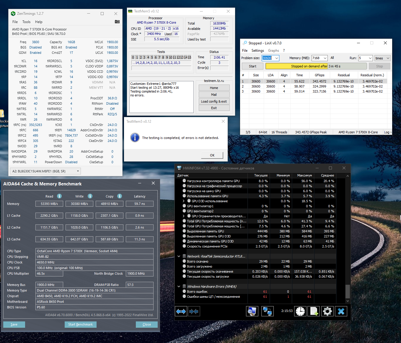 Agiliterrvspost 1 скрин - TM5 Anta, 1 ошибка WHEA вылезла почти под конец теста. 2 скрин - запустил LinX - и тут их поперло просто одна за другой..