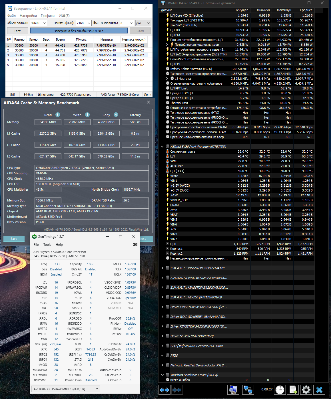 MadMaxxrvspost Сделал как сказали. Куда дальше двигаемся? WHEA пропали, гфлопсы выросли (понял, что ранее IF 1900 я тупо задушил пекарню) Только тут я случайно LinX 0.9.11 от Anta запустил, а там 0.7.0 был