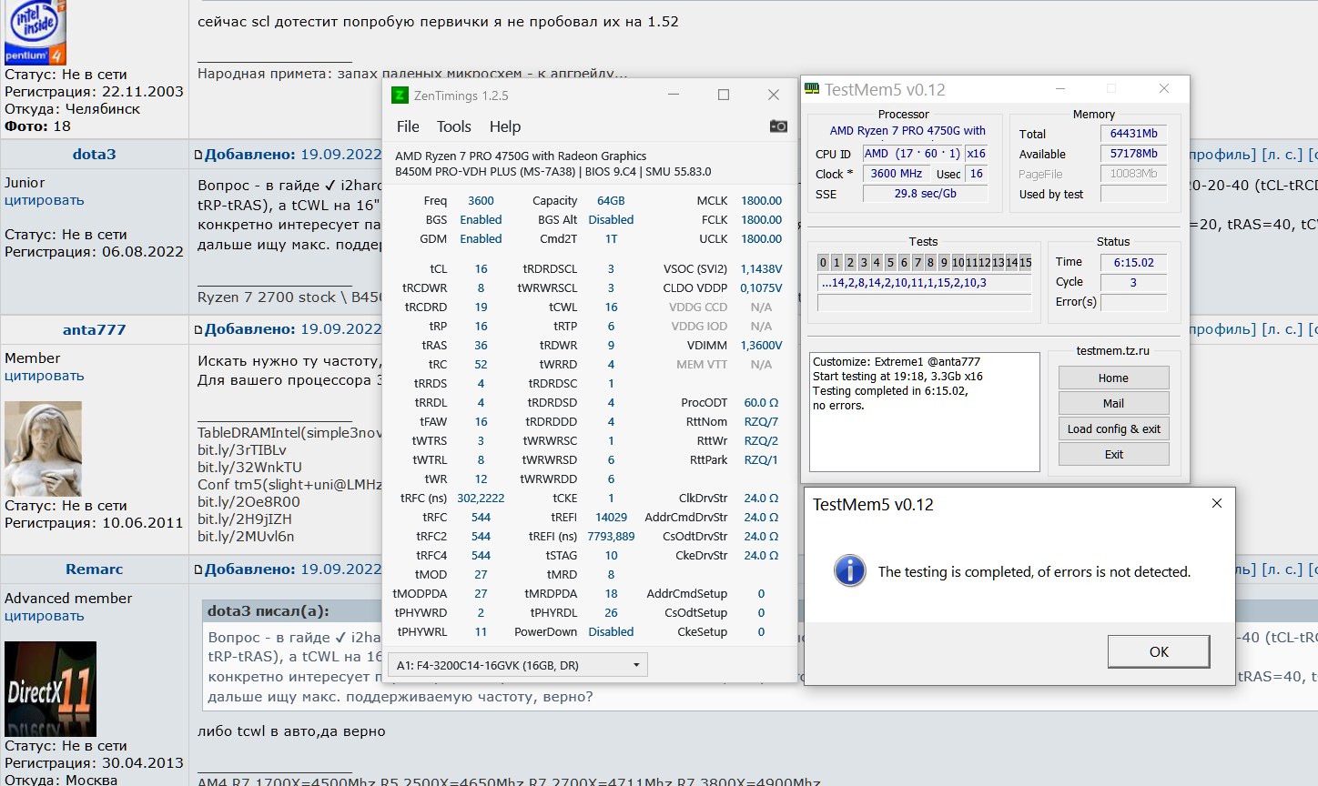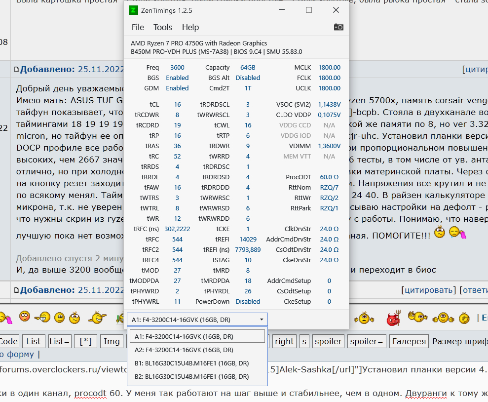 Любой вопрос с проблемой настройки памяти, подкрепляйте скрином ZenTimings, обязательно указываем DRAM Voltage. Убедительная просьба заполнять профиль и подпись на форуме, указывая свои комплектующие.