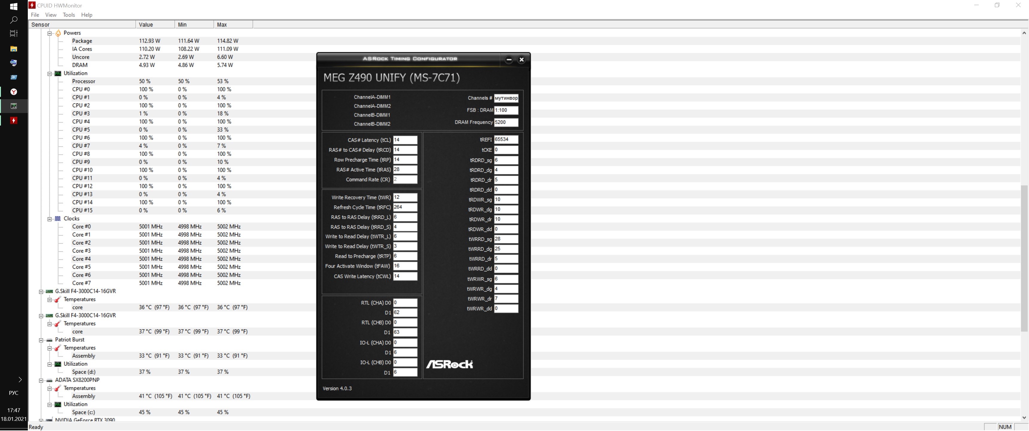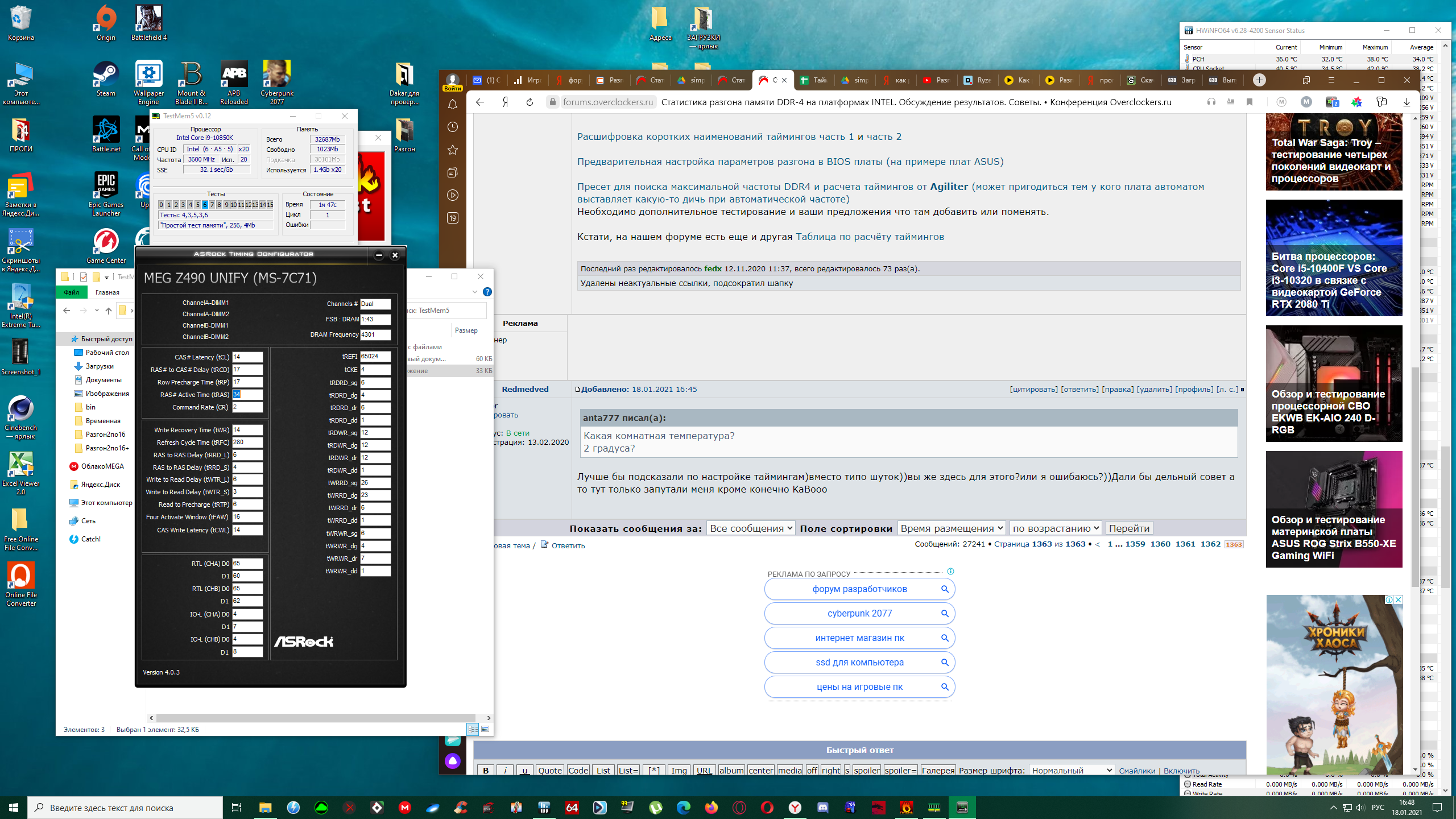 А на скриншоте с пройденным extreme1 конфигом на память напряжение 1.6 вольт, что делает маловероятным ее более-менее длительную эксплуатацию. Если стоит водоблок на память, то я еще допускаю 1.55 вольт для однорангов самсунг b-die, а для двурангов выше 1.50 заходить не стоит. Хотя, может быть, вам без проблем сразу меняют сгоревшую память, тогда можно и 1.8-2.0 вольт на нее ставить и смотреть сколько она проживет. При 1.6 вольт на двурангах температура не может быть меньше 50 градусов при воздушном охлаждении, просто датчик не показывает реальную температуру чипов, можете сравнить термопарой. Какая комнатная температура? 2 градуса?---------И где СОВЕТ??Где помощь?Тут холодные слова без капельки совета!)
