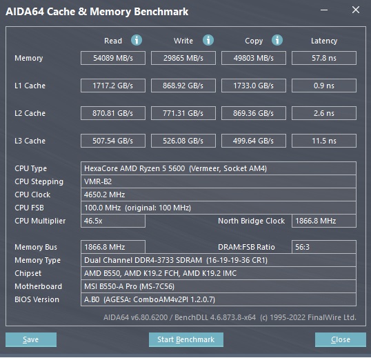 Профильная система: R5-5600G, MSI B450-A PRO MAX, HP 48U41AA#ABB Память одноранговая Samsung B-die 2 х 8GB. 3200 14-14-14-14-34 1.35-1.50V Результаты разгона памяти очень скромные. От B-Die 8.8ns я большего ожидал.