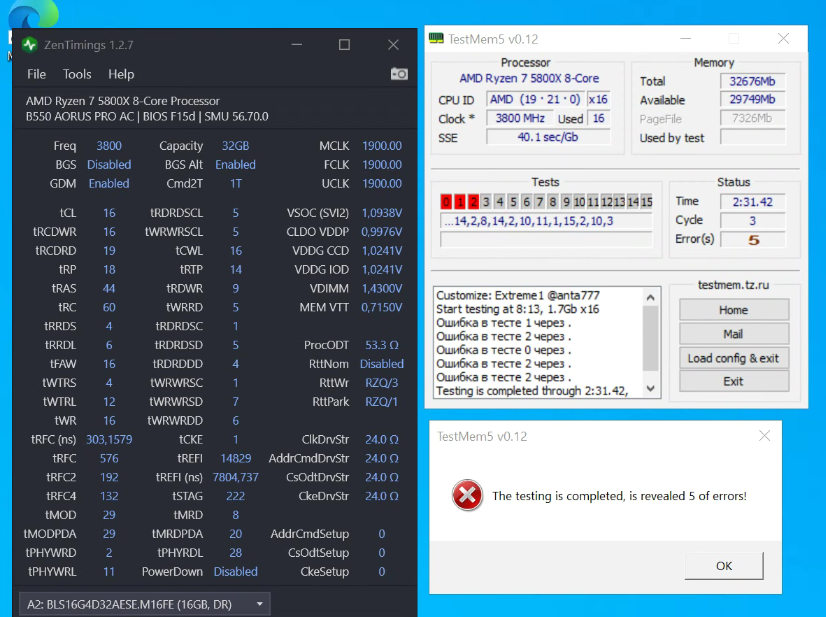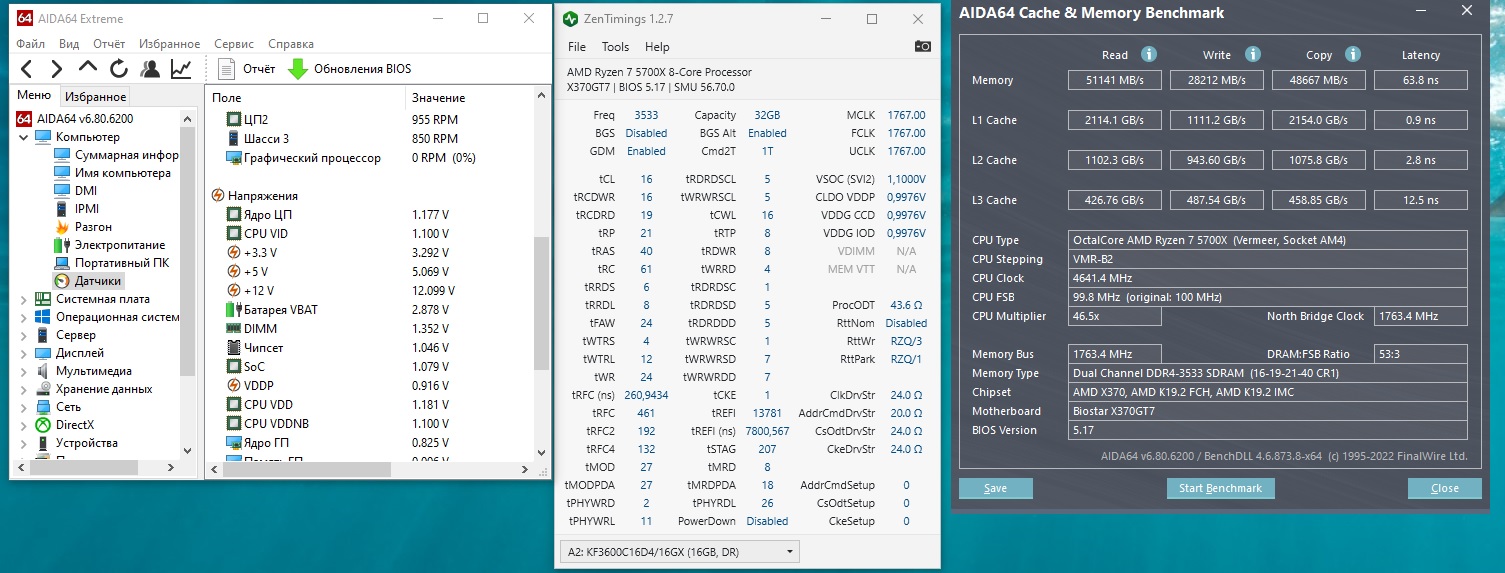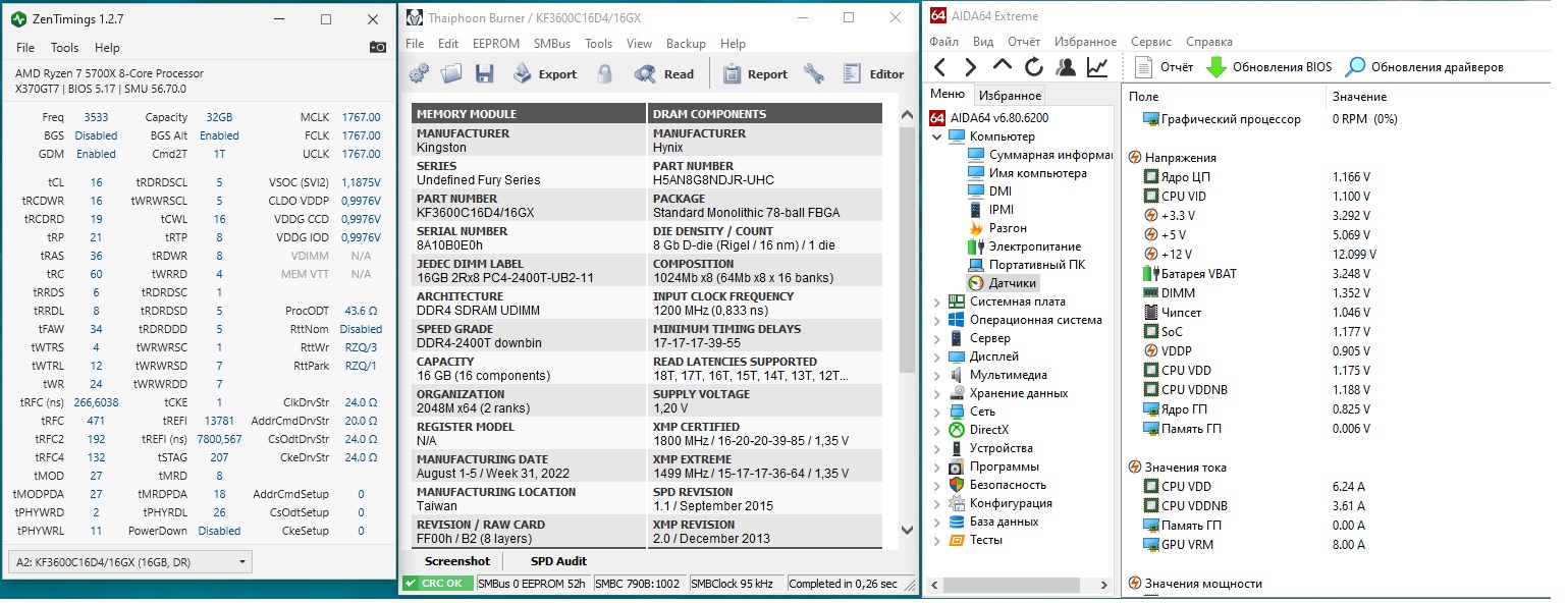 Ребят помогите, остался 1 день для сдачи этой памяти обратно вендору. Реально ли на этом конфиге погнать ее до 3800? на 3533 сейчас стабильна, но стоит поставить частоту выше и комп просто виснет ДО загрузки биоса, даже спикер молчит о ошибке памяти, приходится сбрасывать cmos. Отстал от этой темы и времени мало на поиск всей инфы, какие безопасные значения напряжения для этой памяти и интересует Soc voltage какое значение безопасно для постоянного использования(мать сама поднимает до 1.17)?. Буду благодарен за помощь. Мать Biostar x370 gt7, проц 5700x. Думаю ее покупка была скорее всего ошибкой и надо было сначала ознакомиться с инфой здесь)