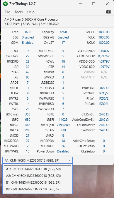 Скрины из Тайфуна не прикладываю, так как он пишет, что чипы b-die, однако маркировка чипов под радиаторами врать не будет, там видим SEC C-Die: K4A8G085WC-BCTD.