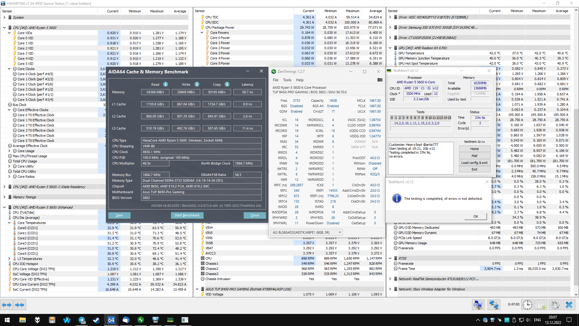 4. Перед настройкой частоты и таймингов рекомендуется установить принудительное охлаждения на модули памяти, особенно для памяти с чипами Samsung B-die, повышение температуры памяти выше 48°, может сопровождаться дополнительными ошибками, не связанными с неправильной настройкой таймингов, что затруднит их поиск и общую настройку памяти.