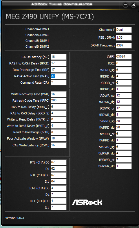 Below are the typical tRFC in ns for the common ICs: IC tRFC (ns) Hynix 8Gb AFR 260 - 280 Hynix 8Gb CJR 260 - 280 Hynix 8Gb DJR 260 - 280 Micron 8Gb Rev. E 280 - 310 Micron 16Gb Rev. B 290 - 310 Samsung 8Gb B-Die 120 - 180 Samsung 8Gb C-Die 300 - 340