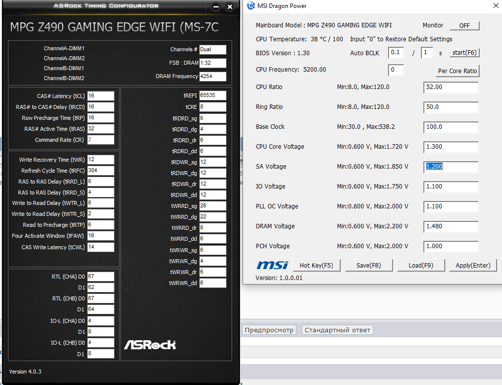 Всем привет, хотел поинтересоваться, знает ли кто решение проблем с частотами выше 4266 на msi z490. Суть проблемы: на частотаз выше 4266 я могу пройти любые тесты, но после перезапуска начнёт сыпать даже в самом простом. Лечиться непонятно чем, возможно несколькими перепрошивками биоса. Комплектующие: msi z490 gaming edge wifi, 10600kf, t-force xtreem 4133 18-18 xmp. То что пробовал и не помогает: разные биосы, завышение напряжений, завышение таймингов, авто тайминги, фиксация сопротивлений, ноутренинг, авто ртл/иол, ручные rtl/iol. Также исключён перегрев памяти. Сейчас сижу на таких настройках