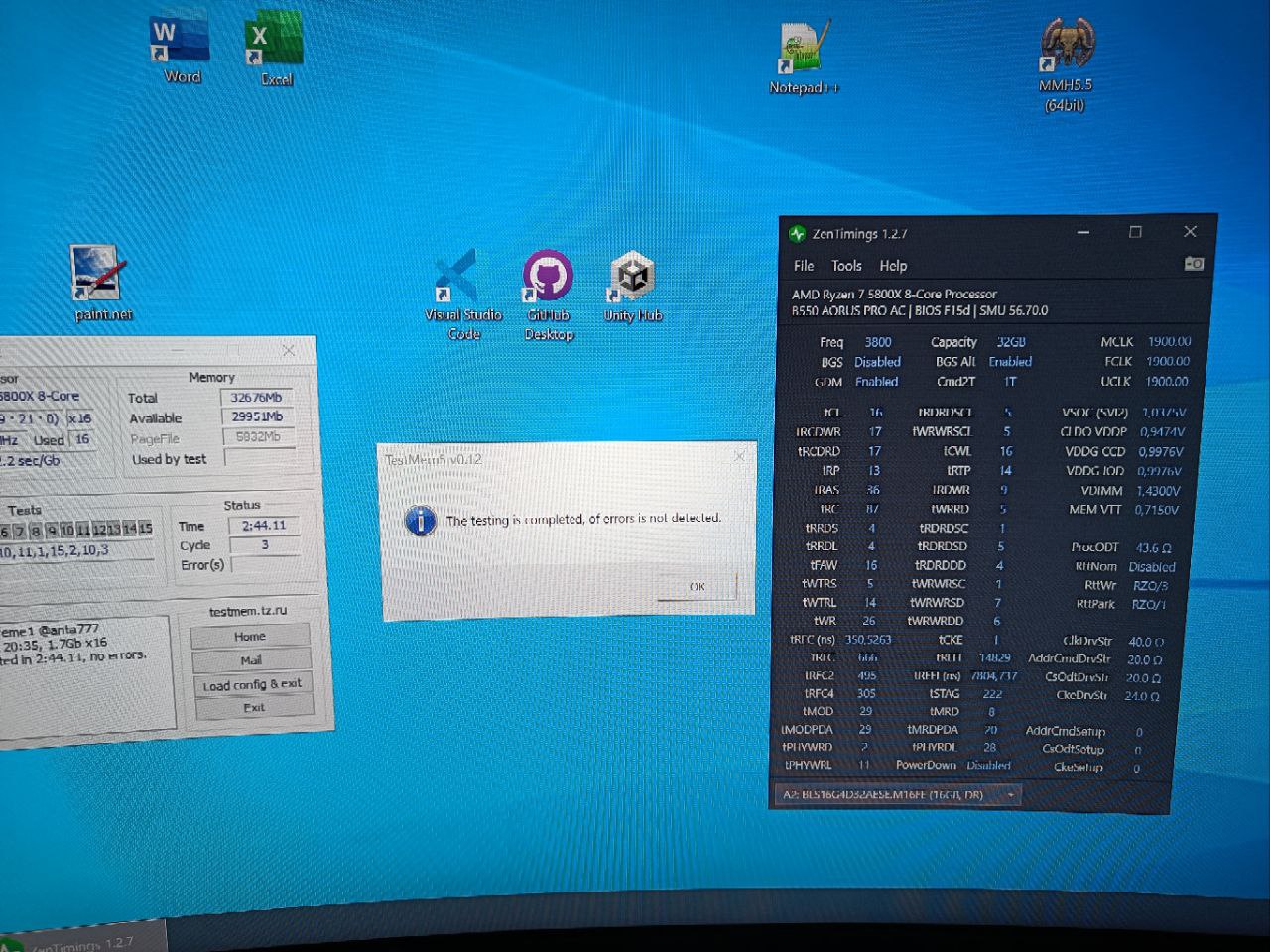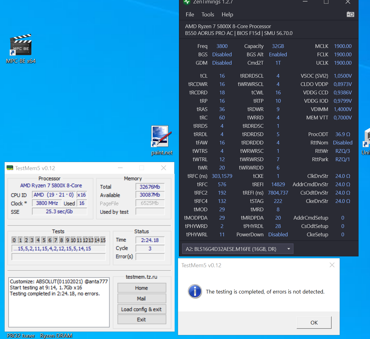 Ну я так (19 19 и всок 1.1) в прошлый тест попробовал MadMaxx советовал, и мне почему то прям сходу тоже ошибок навалило Походу то ли память то ли плата у меня очень чувствительная к вольтажам и одт этому