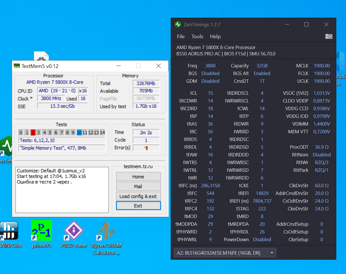В системе все стабильно, в тестах OCCT, Aida64, memtest86 все стабильно, но вот в testmem5 на конфиге extreme@anta777 появляется 2 ошибки в 3 цикле, спустя 2 часа прохождения. На 13 и 2 тестах.