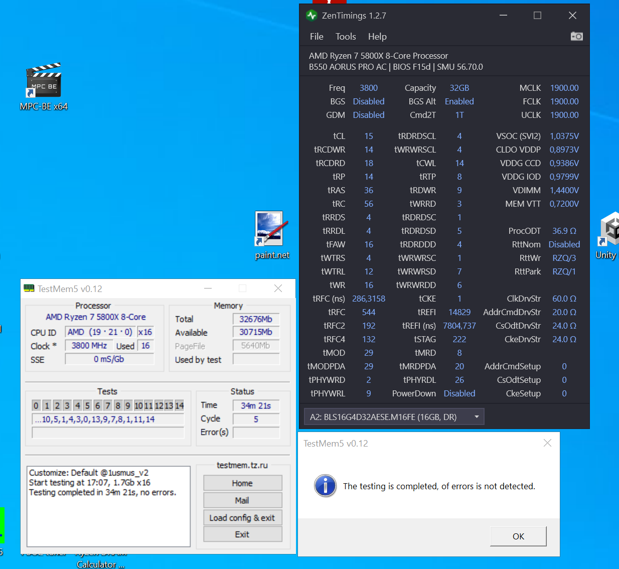 Приветствую, товарищи. Подскажите пожалуйста, что еще нужно настроить, чтобы memtest прошел без ошибок? CPU: Ryzen 5950x MB: MSI B550 Unify-X RAM: 32gb(16x2) Crucial Ballistix BL16G32C16U4B.M16FE1 (DRAM Voltage 1.4v)