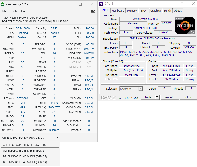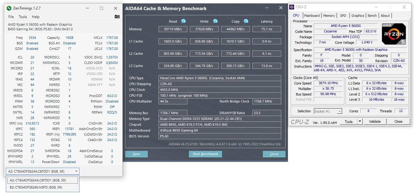 проц - R5 5600G мп - Asrock B450 Gaming K4 память - Crucial CT8G4DFS8266 DDR4-2666 8Gb, Crucial CT8G4DFS824A DDR4-2400 8Gb (тайфун не определяет почему-то) Напряжение на памяти 1.2в.