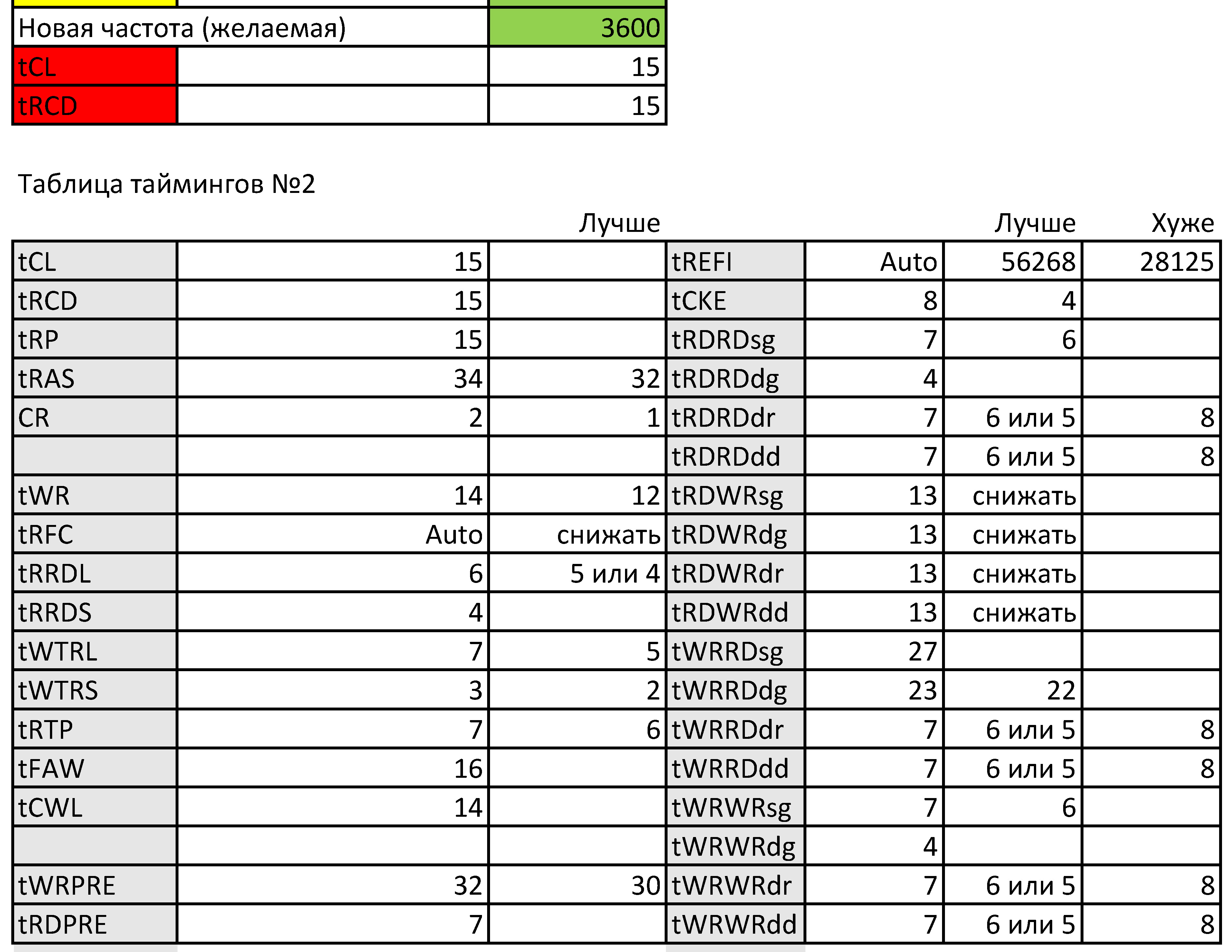 Универсальный гайд. 0. Устраните любые потенциальные проблемы с другим железом. Снимите разгон с видеокарты, снизьте частоту цп на 300 с сохранением напряжения. Не забудьте вернуть RTL в авто если сейчас не авто. 1. Крутим очень короткий мемтест, то есть если минуту живёт сразу снижать тайминг дальше. Ищите не стабильность, а явно сбойное значение тайминга, запишите его - пригодится. Гораздо проще найти явно нерабочее значение и от него плясать чем пытаться ловить нестабильность часами. Это также помогает диагностировать сбойные тайминги на ранее "стабильной памяти". Не пытайтесь найти предельные значение сразу. Сначала скрутите до +2 от минимально стабильного. Многие тайминги идут параллельно поэтому бессмысленно пытаться скрутить до упора с первого прохода. CR выставить на 2 если стоит 1. В самом конце можно попробовать скинуть до 1. 3 Ставить только на очень большую частоту или если по другому ну совсем никак.