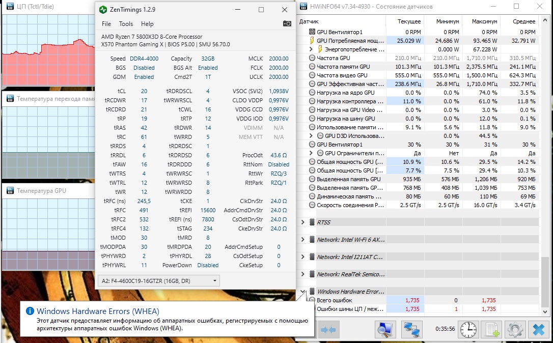 Помогите пожалуйста разобраться. Пытаюсь разогнать память и заметил такую особенность: как только поднимаю fclk выше 1900, то hwinfo сразу начинает фиксировать ошибки WHEA, но тест TM5 с конфигом 1usmus на 9 проходов никаких ошибок памяти не находит. Это ошибка процессора, или я где-то накосячил с разгоном памяти?