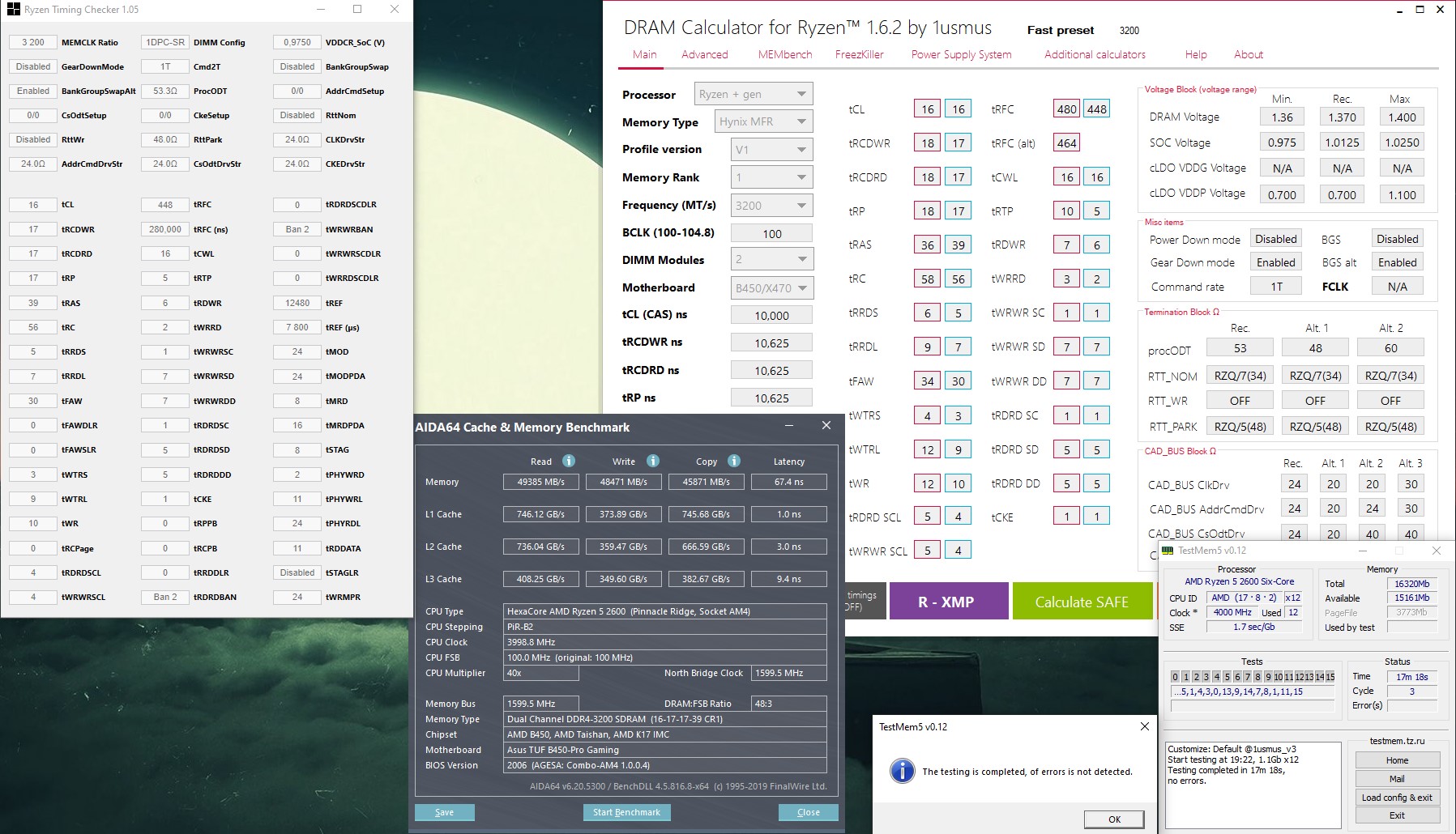 4 и 8 не пошли, ошибка в ТМ5. Попробую 4 и 12 еще. Спасибо! Часто видел как ослабляя tRCDRD и tRFC добиваются более высокой частоты. Умеет смысл поставить tRCDRD 16, увеличить tRFC до 260, вольтаж на SoC и память и двинуть 3600 Мгц? Или для 4-х модулей это пустая затея?