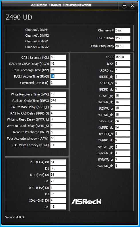 Начните с RCD, CL. Не обязательно должны быть одинаковыми, обычно CL идёт меньше чем RCD. RAS сразу пробуйте как RCD+CL+4, до этого значения от него существенная разница, дальше меньше. CWL<=CL. Допустимые значения 9,10,11,12,14,16,18,20. RP можете выставить по RCD, если пойдёт меньше - тоже неплохо, не уверен правда насчёт смысла. RTP без формул. Если не идёт вниз можно попробовать поднять чуть чуть RP. В DDR4 явно связан с WR соотношением 2 к 1 (например WR20\RTP10), физически хранится одно значения и в зависимости от операции интерпретируется. Скрутите FAW до 16(так и оставьте если работает). С таким FAW скручивайте RRD(оба, L обычно больше чем S), возможно поедут на 4 оба. Если до 4 не удалось спустить поднимите FAW до уровня RRDL*4 и попробуйте ещё, хотя это скорее всего уже почти предел. Обычно L>=S. L - SG(Same Group). S - DG(Different Group) Напр. RRD_L>=RRD_S. CKE=5 СCDL>=4 RDRD_DD и прочие подобные можно проигнорировать если у вас нет двух планок на один канал (4 планки). DD-Different Dimm. Тоже самое с DR-Different Rank если у вас одноранговая память. RDWR_SG(DG) и подобные сочетания скручивайте до минимальных рабочих, потом накиньте сверху +2. Как уже отметил обычно SG>=DG. WTR не трогайте он сам спустится когда будете скидывать WRRD_SG(DG) и прочие подобные. Если сам меньше не стал тогда руками скидывать. WR снижать через WRPRE если есть. Если нет или не снижает WR, То скрутите его скажем до 12 или +4 от рабочего, потом дожмёте если не лень будет. RFC явных формул нет, крутить после всего списка сверху. Не пытайтесь найти его минимальное значение если не хотите чтобы память начинала сыпать ошибками от любого чиха. найдите пограничное со стабильностью значение и накиньте сверху 20 или сразу 40. Может реагировать на RAS+RP, RRD, FAW, причём в обе стороны (то есть может "сломаться" если задрать названные), а может и не реагировать... REFi больше лучше. Связан с RFC. REFI сколько память "работает" - RFC сколько "отдыхает". Оба тайминга лучше не пытаться найти предельное значение.Заметно реагируют на температуру. Многие тайминги отзываются и на температуру и на напряжение. Поскольку напряжение может как позволить снизить тайминг, так и увеличить температуру, то середину можно искать очень долго, поэтому лучше бы вовремя остановится. Тестируйте тщательно с перезагрузками, сном, холодным стартом. RTL и IOL вам кто-то другой пусть советует как настраивать, от них у меня голова болеть начинает...