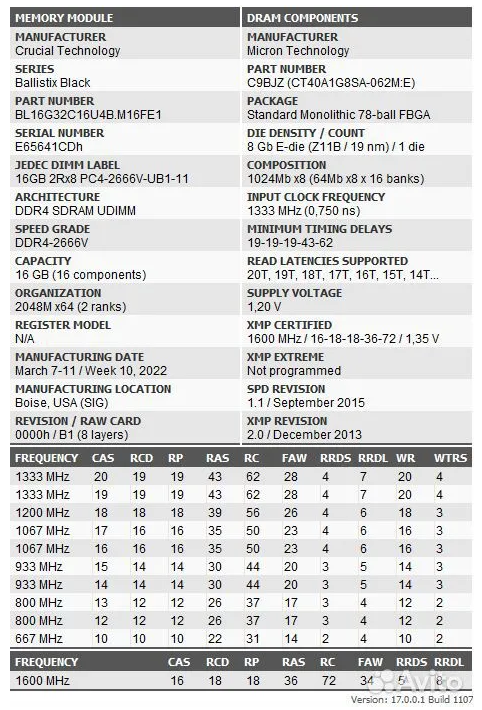 E-die / B-die 2x16 Gb Берем любые Crucial Ballistix с профилем XMP 3000 CL15, 3200 CL16 и 3600 CL16 маркировка (комплект): BL2K16G30C15U4 (Micron rev.E), BL2K16G32C16U4 (Micron rev.E/rev.B) или BL2K16G36C16U4 (Micron rev.B) маркировка (поштучно): BL16G30C15U4 (Micron rev.E), BL16G32C16U4 (Micron rev.E/rev.B) или BL16G36C16U4 (Micron rev.B) (главное, чтобы в маркировке присутствовало U4, последние буквы означают цвет радиаторов) например: BL2K16G30C15U4RL BL2K16G30C15U4WL BL2K16G30C15U4BL BL2K16G32C16U4BL BL2K16G32C16U4R BL2K16G32C16U4B BL2K16G32C16U4RL BL2K16G32C16U4WL BL2K16G36C16U4WL BL2K16G36C16U4R BL2K16G36C16U4B Для того, что бы понять какие планки мы покупаем - dual rank или single rank, достаточно посмотреть шифр после маркировки: M16FE1 -> 16 чипов / 8 с каждой стороны (dual rank), rev.E; M8FB1 -> 8 чипов (single rank), rev.B;