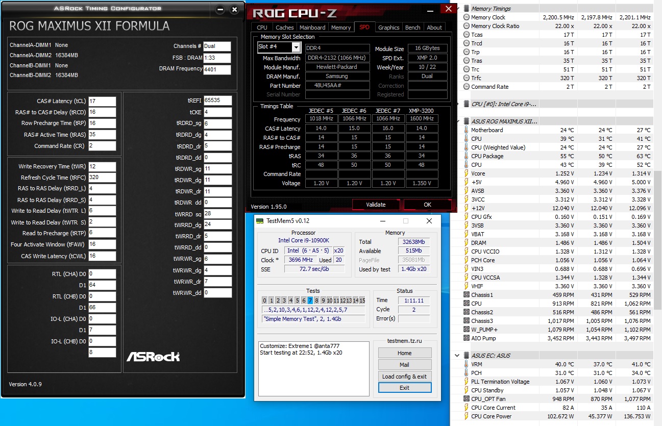 дополню информацию по HP V10 48U45AA#ABC PC3200 14-14-14-34@1.35v поcле тонкой настройки. VDRAM 1.49v, VCCSA 1.32v, VCCIO 1.30v, LLC 4. 10900K и Maximus XII Formula. Думается, нужно сменить штатные радиаторы на что-то эффективное, поскольку после часа TM5 даже теплыми не становятся. Думаю, там что угодно, но не термопрокладка.
