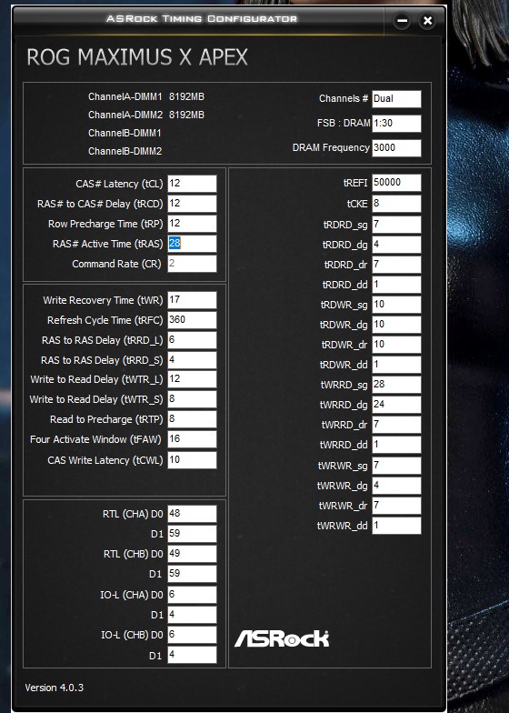 Добрый день! BL2K8G32C16U4R Настраивал первый раз, прошу подсказать что еще можно подкрутить или поэксперементировать. Напруга 1,4; 1,28 и 1,34 соответственно