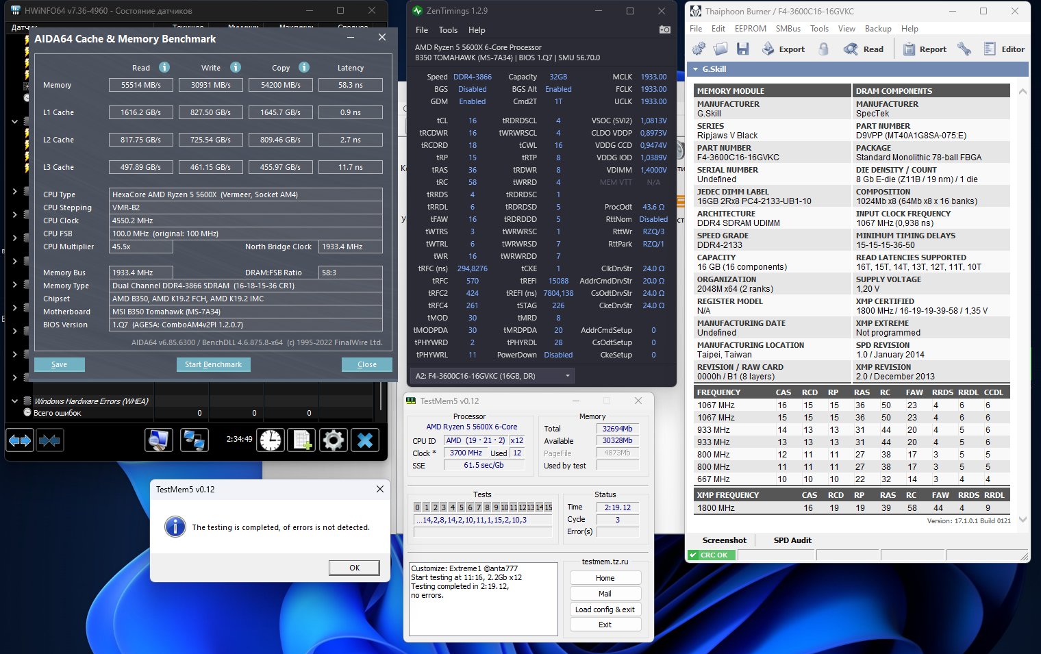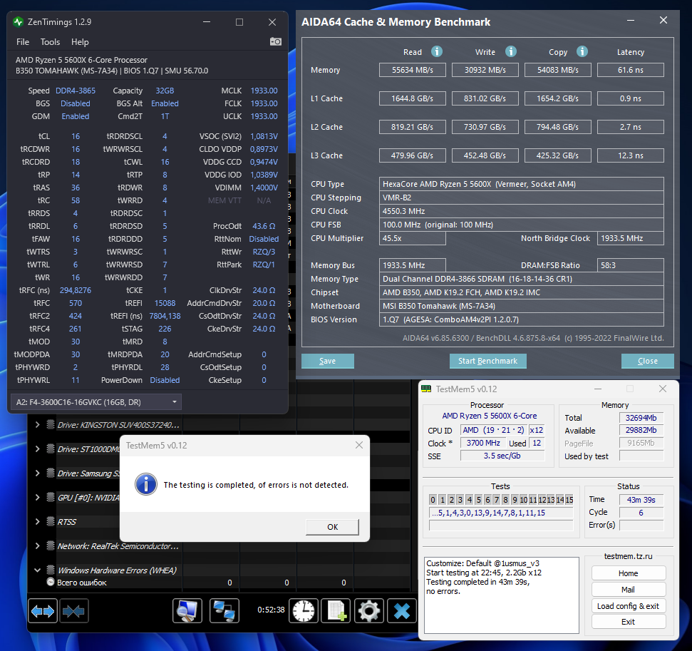 Провёл более тщательное тестирование - нашлась одна ошибка, пришлось чуть поднять tRP. Extreme конфиг от anta777, конфиг v3 1usmus, следом OCCT тест памяти на AVX2.