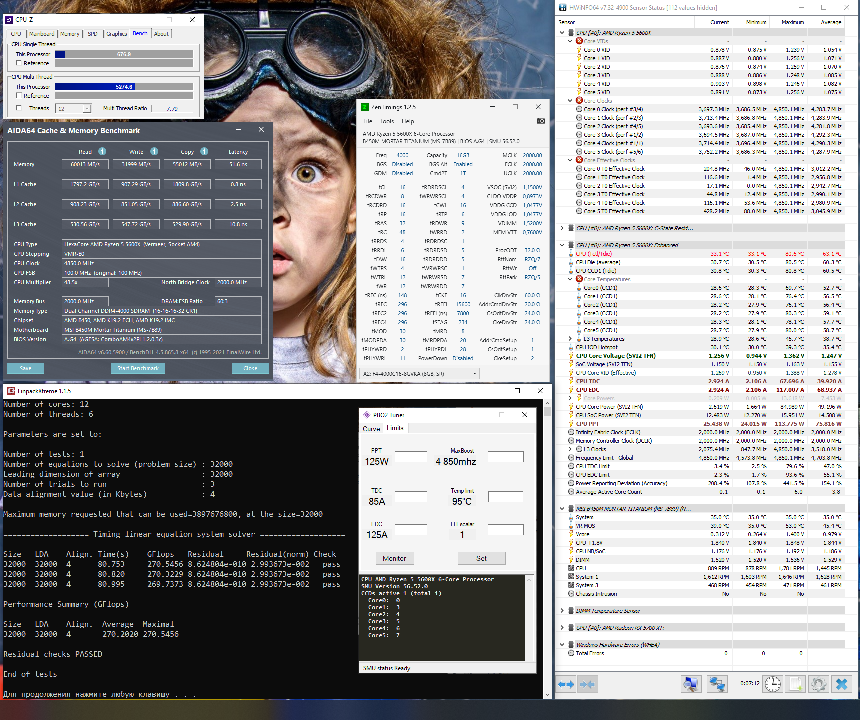 в фиксе это скорее всего от нагрузки зависит, чем от частоты ядер: https://ibb.co/DWjkzDp , а в линксе только - https://ibb.co/h2yKqxY ; дальнейшее повышение частоты ядер или памяти - whea..