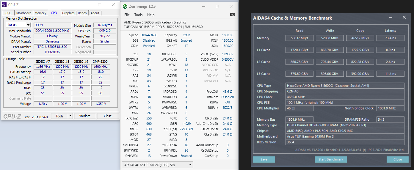 Суммарный объем получается 256Гб, Латентность в AIDA - 90-93mc, tRC ниже 64 -начинает сыпать ошибками, напряжение выше этого - начинает сыпать ошибками.